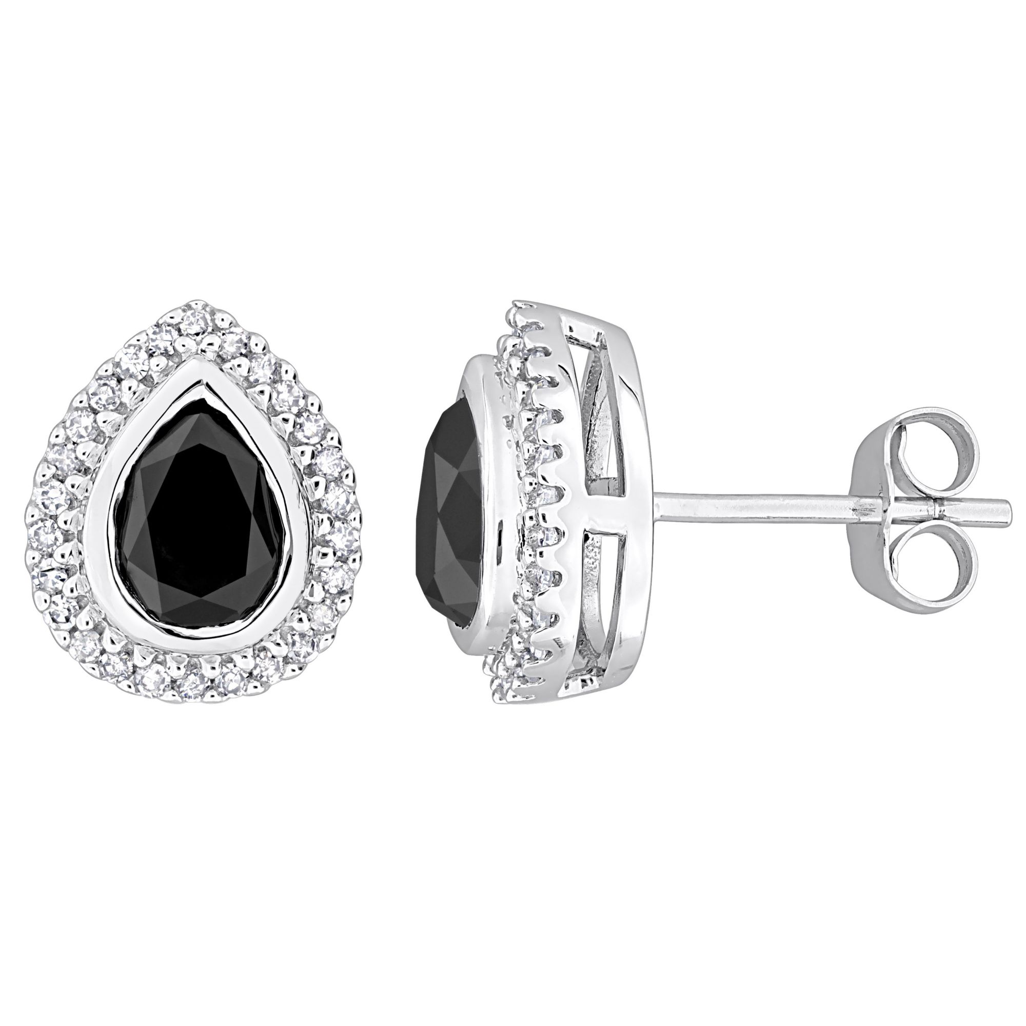2 ct. t.w. Black and White Diamond Teardrop Halo Stud Earrings in 14k White Gold