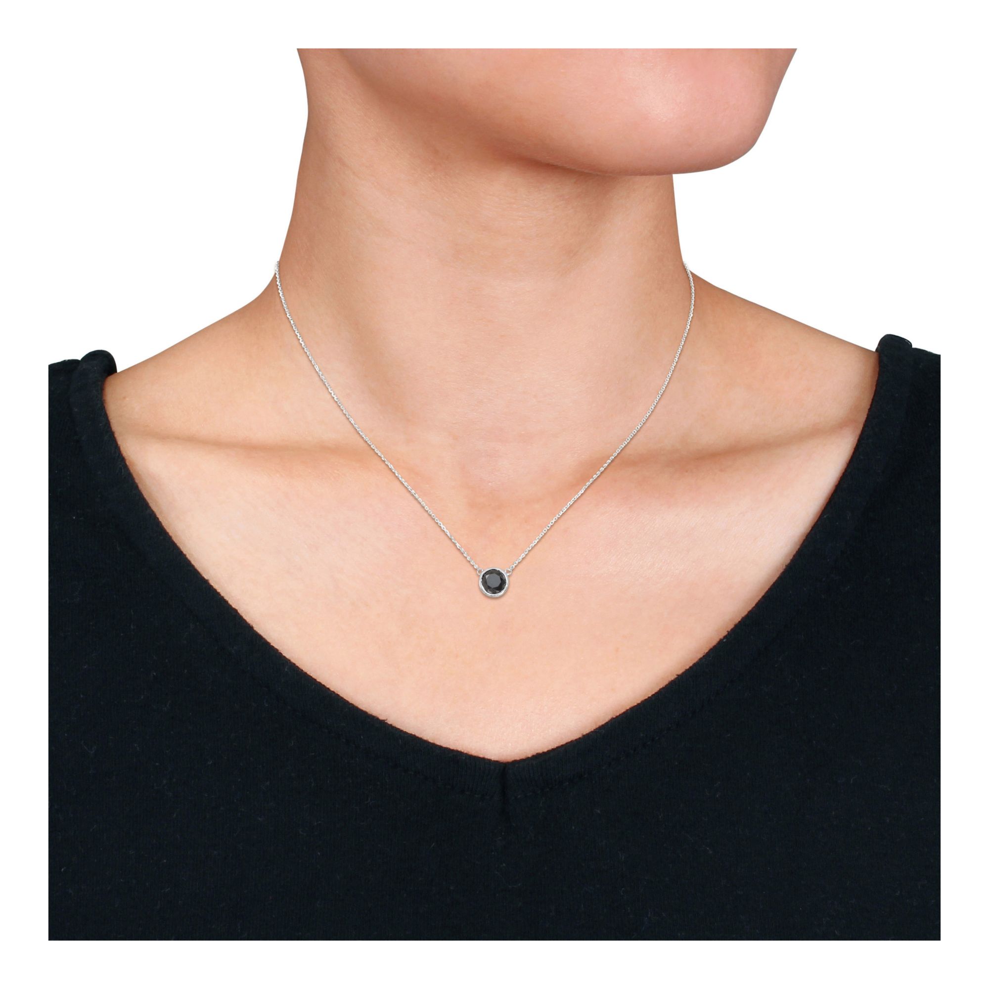 2 ct. TW Black Diamond Bezel Set Solitaire Necklace in 14k White Gold