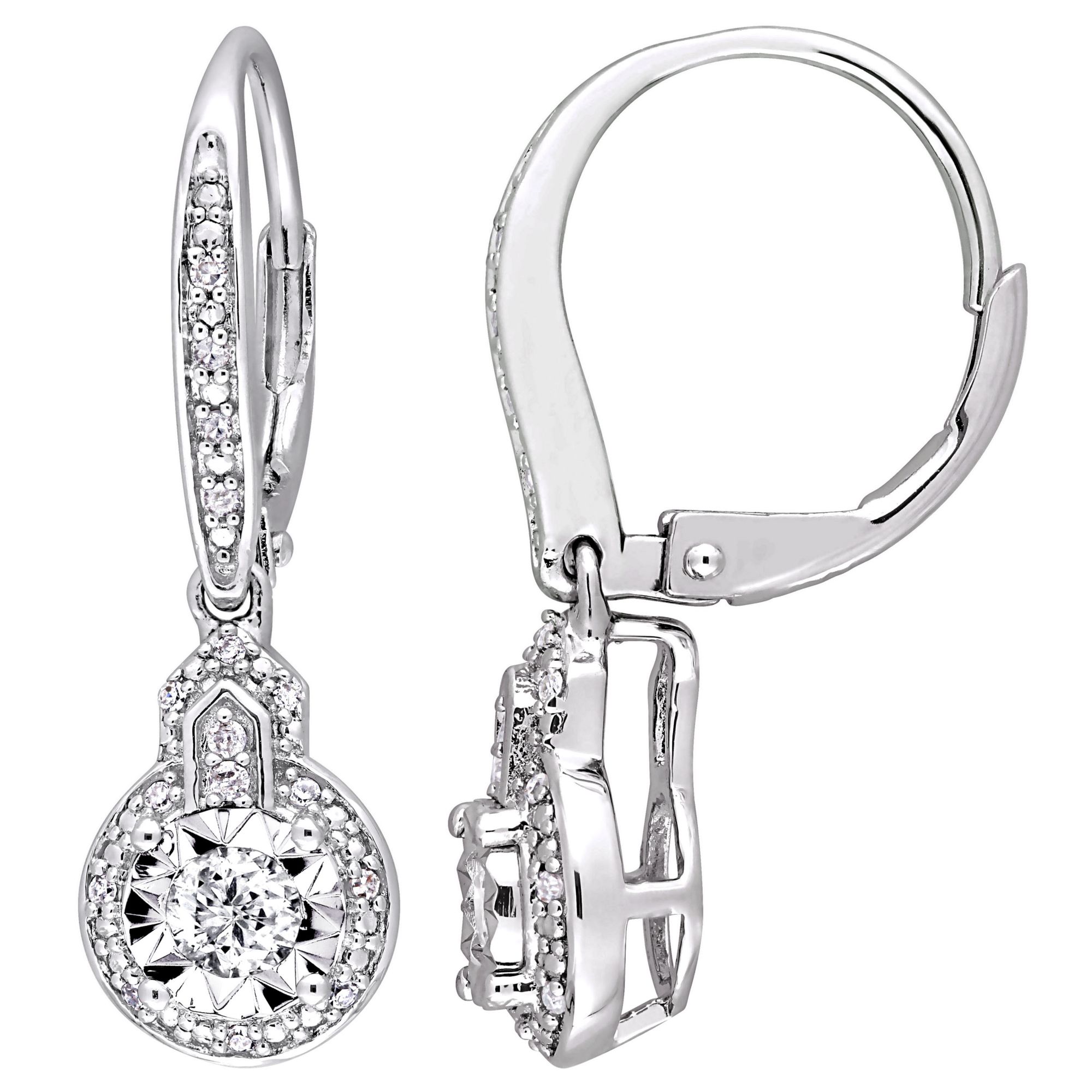 These dainty halo leverback dangle earrings are crafted in sterling silver. These beautiful drop earrings feature round-cut white and enhanced with a high polish finish. These pretty dangling diamond earrings are secured with leverback closures. Make heads turn as you wear these earrings on your next evening out to look stunning.