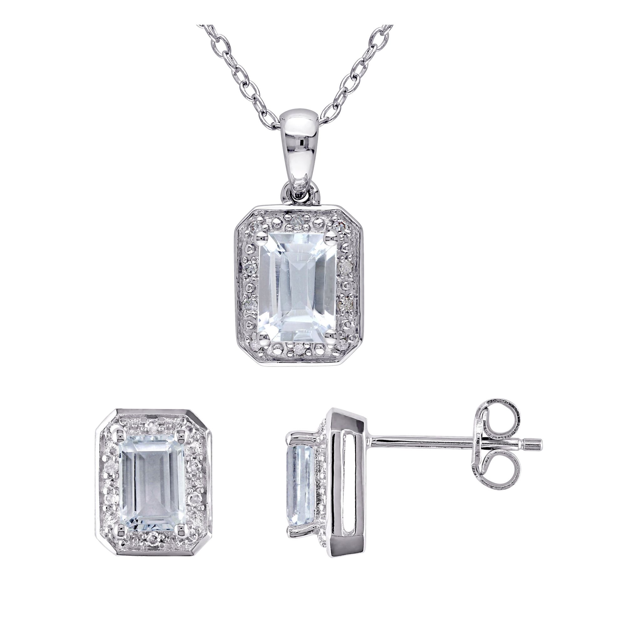 2-Pc. Set Aquamarine and .10 ct. TW Diamond Halo Earrings and Necklace in Sterling Silver