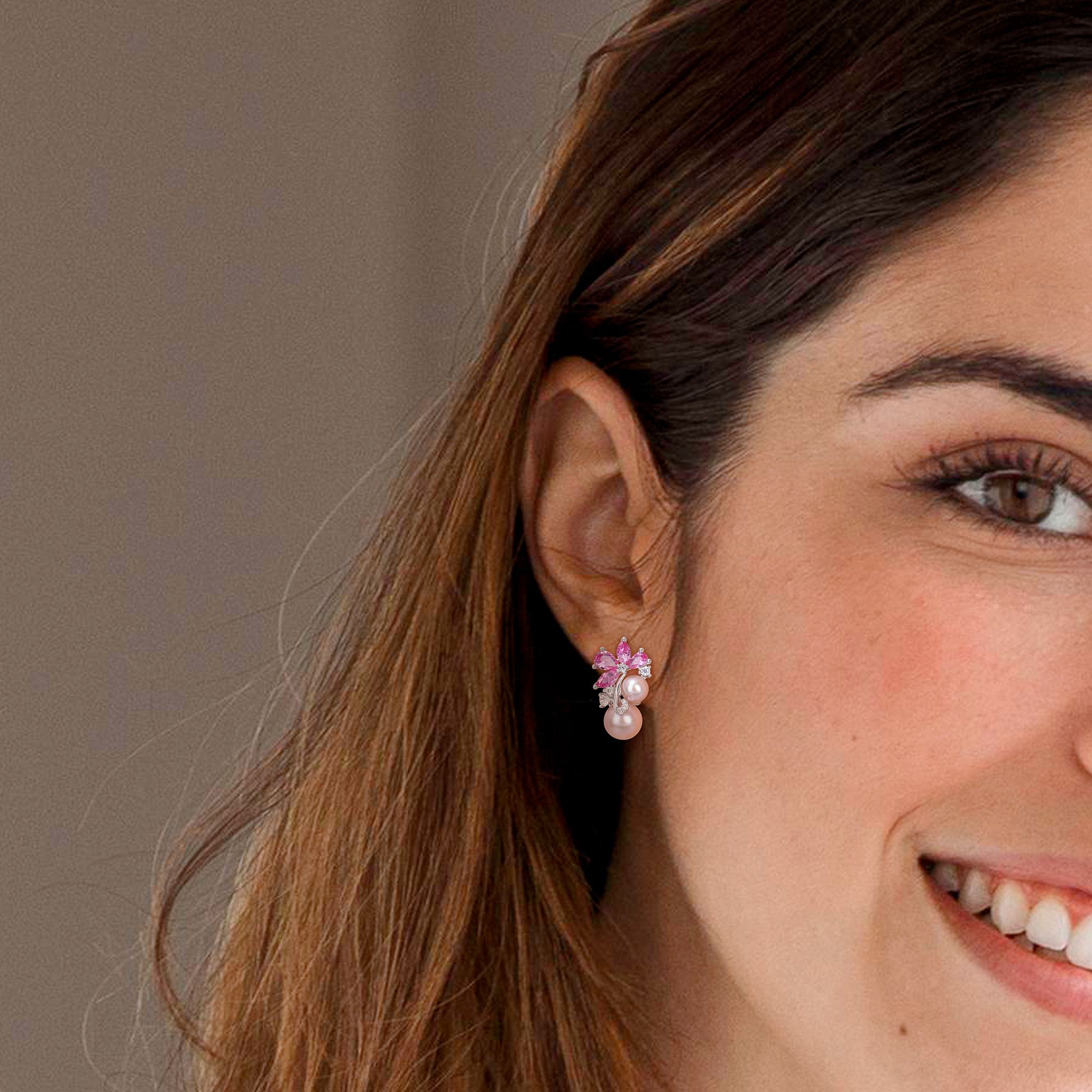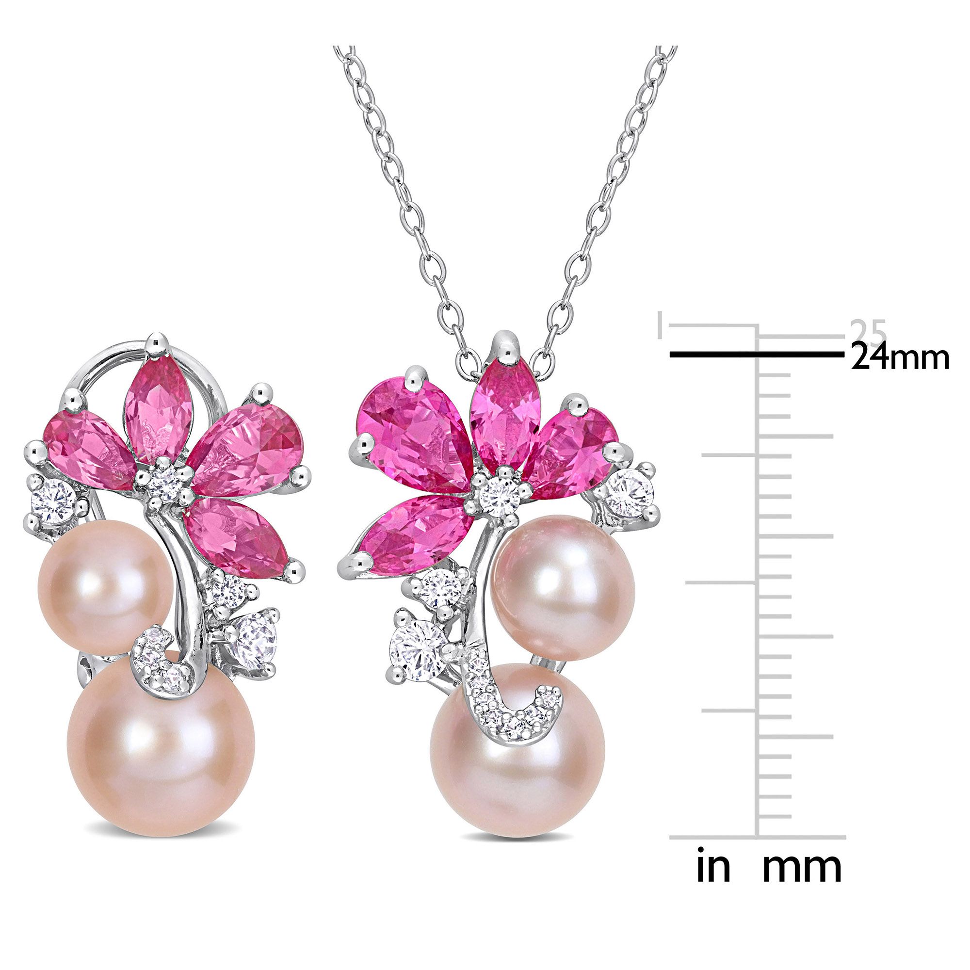 | Includes | 2-Piece Set Pink Cultured Freshwater Pearl Pink & White Sapphire Cluster Necklace and Earrings in Sterling Silver |