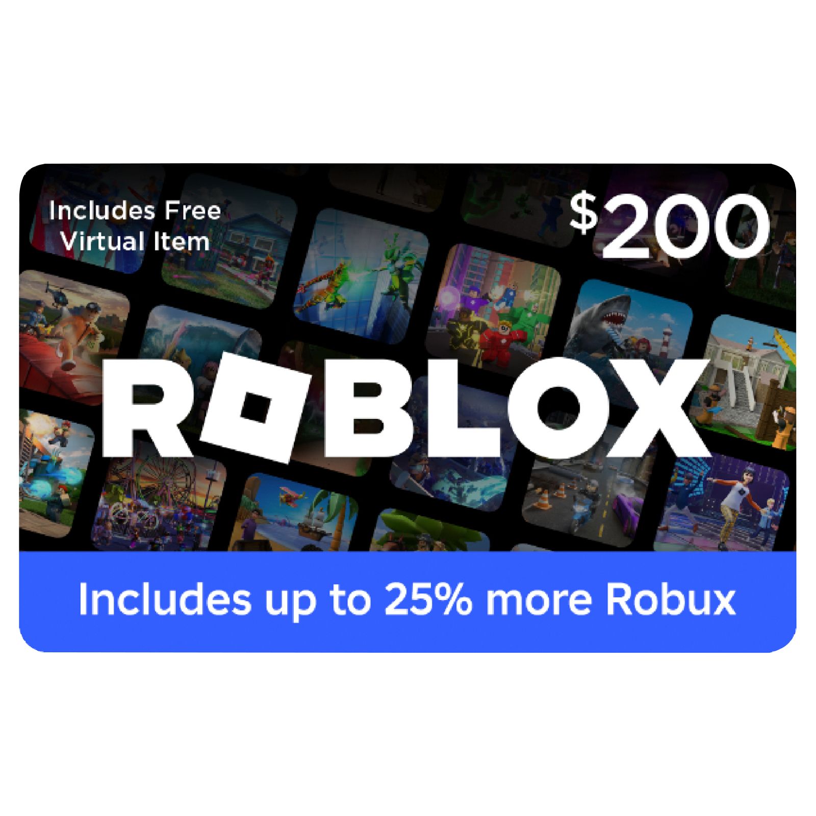 Get more with every Roblox Gift Card! From now on, when you redeem a Roblox Gift Card, you get up to 25% more Robux. Perfect for gaming, creating, and exploring - more Robux means more possibilities. Roblox Gift Cards can only be redeemed in a browser at Roblox.com/redeem. They cannot be redeemed in the Roblox mobile app or any video game console. Deck out your avatar and unlock additional perks in your favorite experiences when you use Roblox Gift Cards to purchase Robux (Roblox's virtual currency). Get exclusive access to virtual items, a monthly Robux stipend, and more by redeeming your gift card for a Roblox Premium subscription. Each gift card grants a free virtual item upon redemption. Roblox is an immersive platform for connection and communication. Every day, millions of people come to Roblox to create, play, work, learn, and connect with each other in experiences built by their global community of creators.