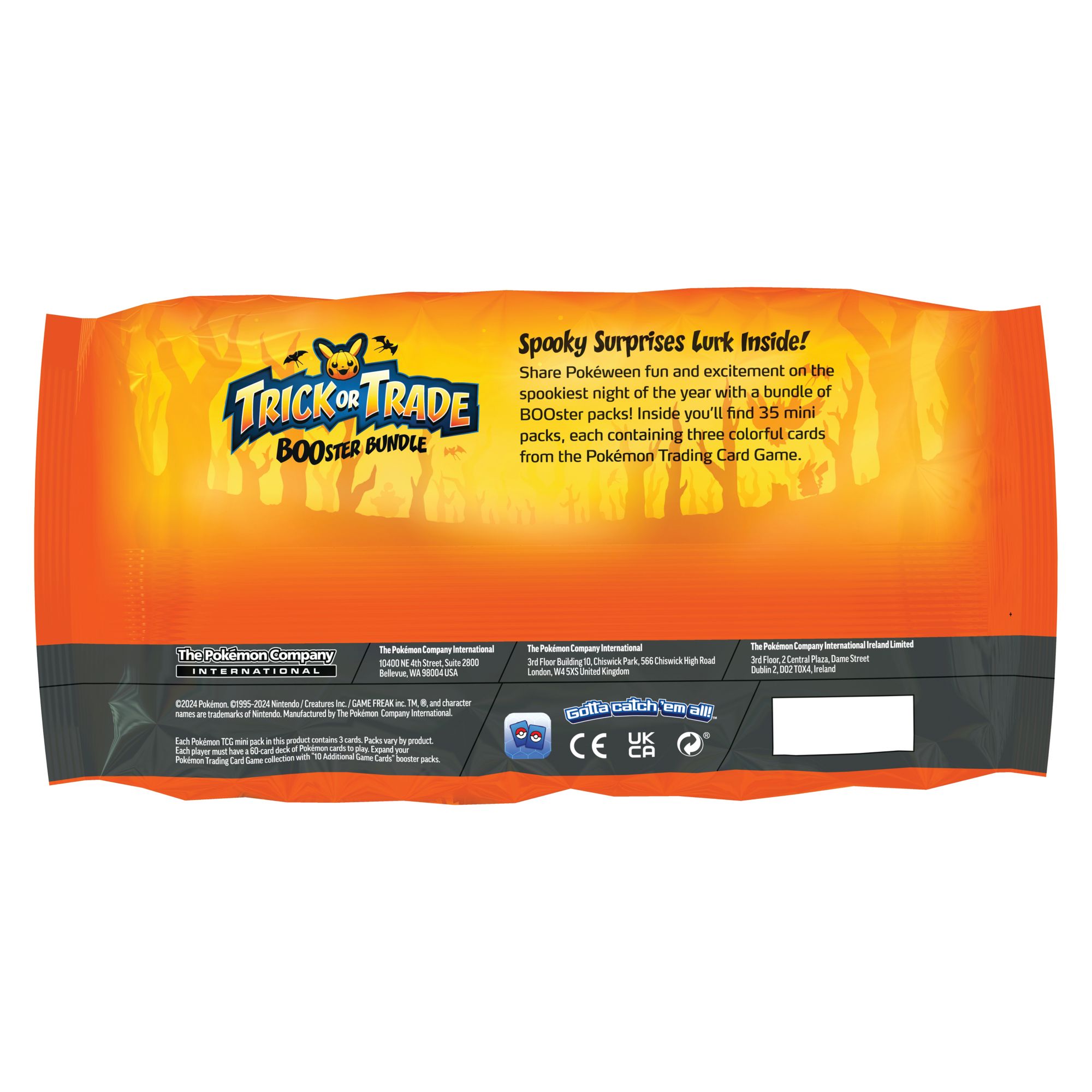 35 mini 2024 Pokémon TCG Halloween packs Each pack contains three colorful cards from the Pokémon Trading Card Game Share Pokéween fun and excitement on the spookiest night of the year with a bundle of BOOster packs Suitable for ages 6 and up Includes 35 mini 2024 Halloween packs