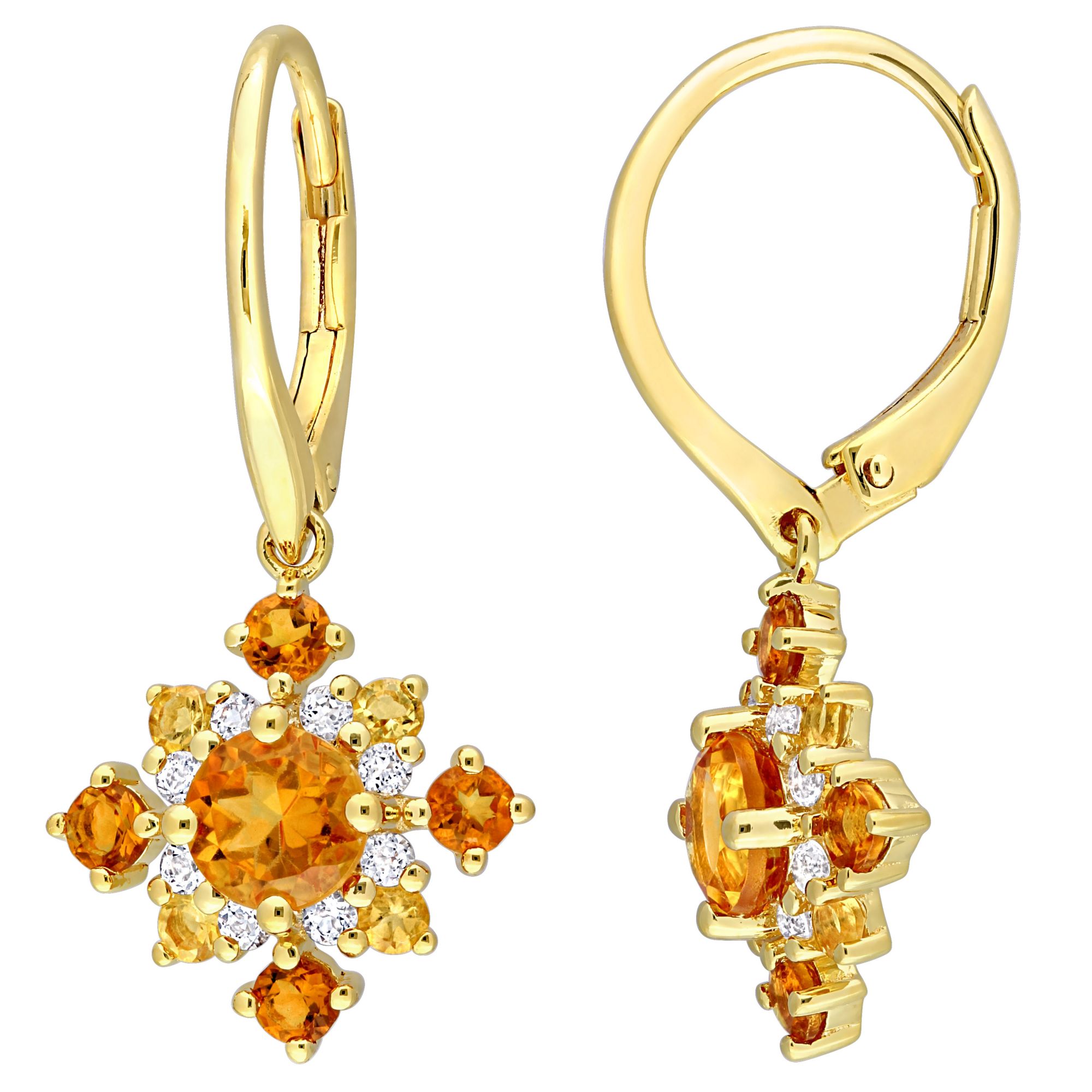 2.1 ct. t.g.w Citrine and White Topaz Cluster Drop Earrings in 18k Yellow Gold Plated Sterling Silver