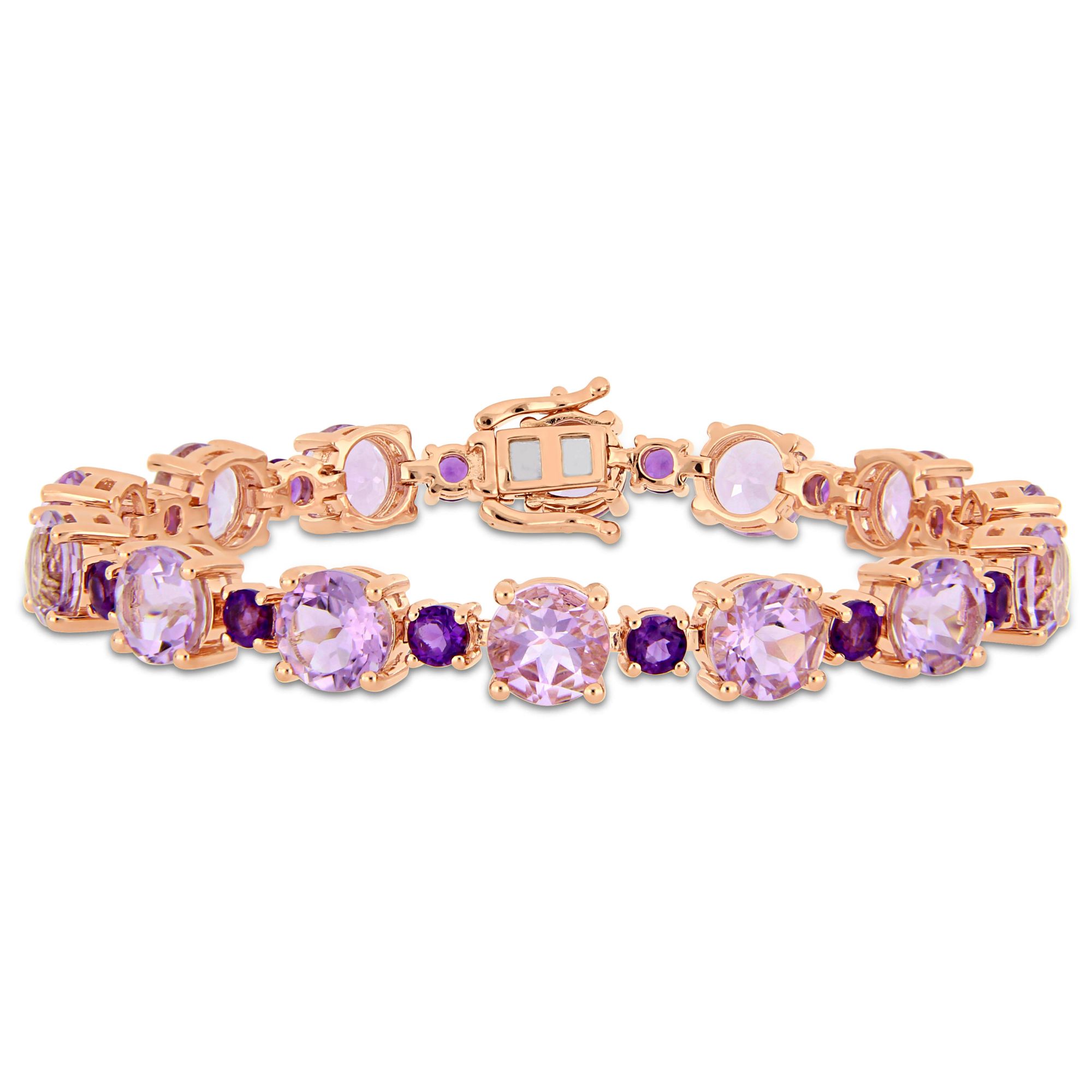 24.64 ct. t.w. Amethyst and Rose de France Tennis Bracelet in Rose Gold Sterling Silver