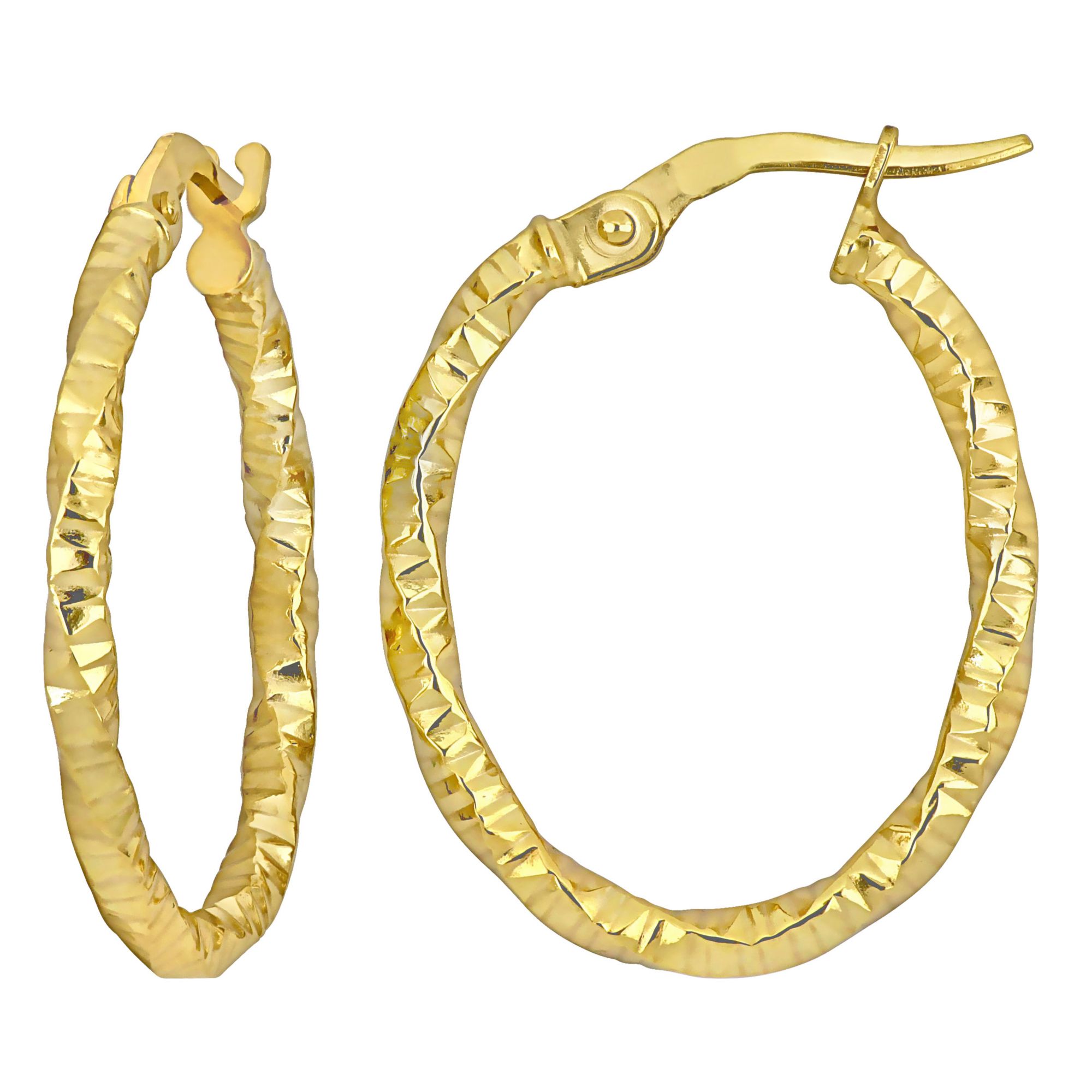 24mm Oval Twisted and Textured Hoop Earrings in 14k Yellow Gold
