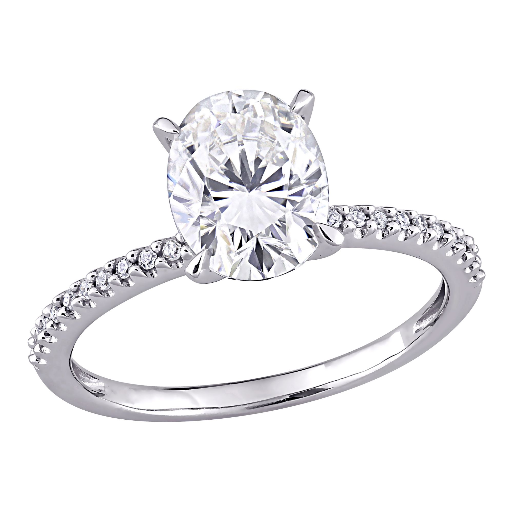 2 ct. DEW Created Moissanite and .1 ct. t.w. Diamond Oval Engagement Ring in 14k White Gold - Size 9