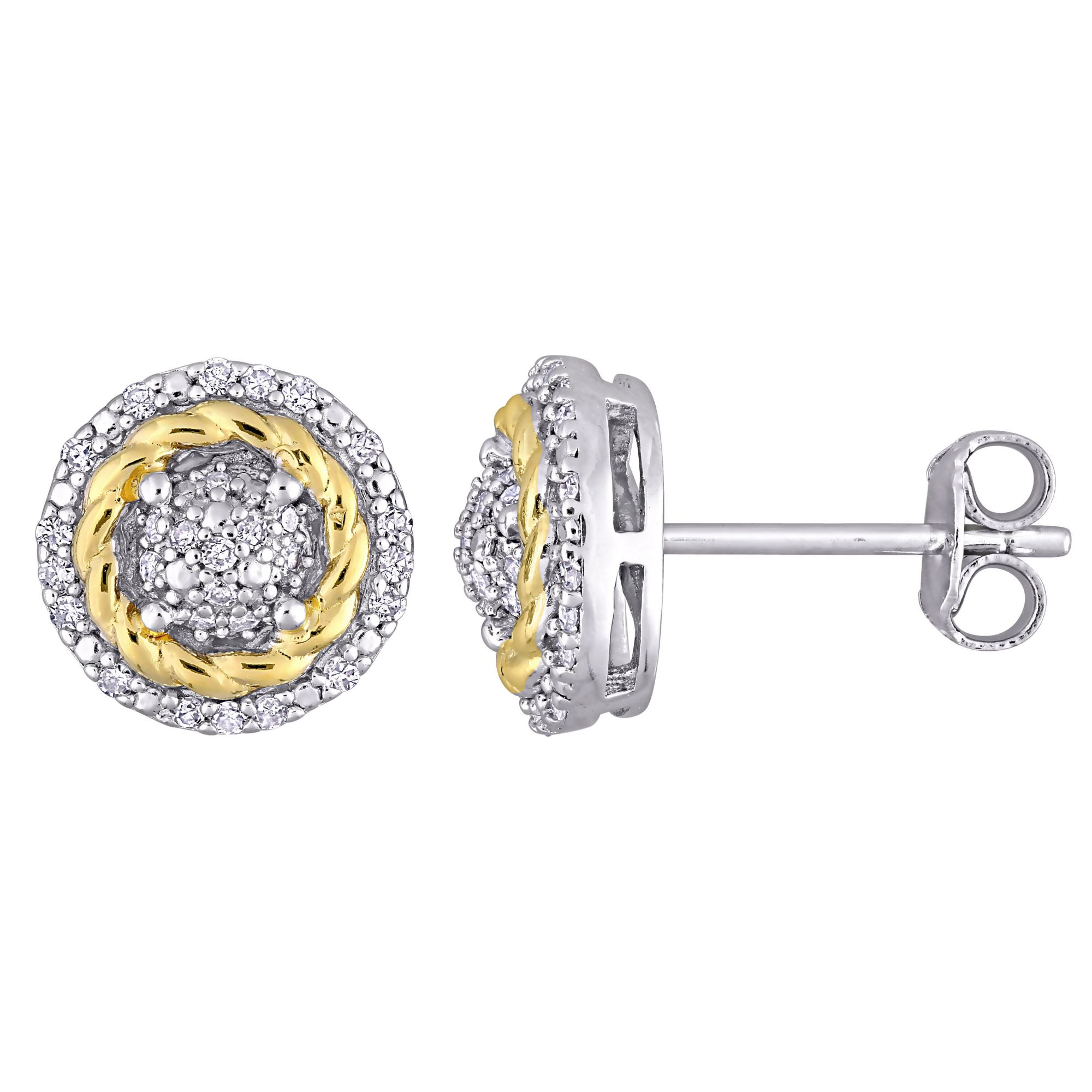 .25 ct. t.w. Diamond Rope Design Halo Stud Earrings in White and Yellow Plated Sterling Silver