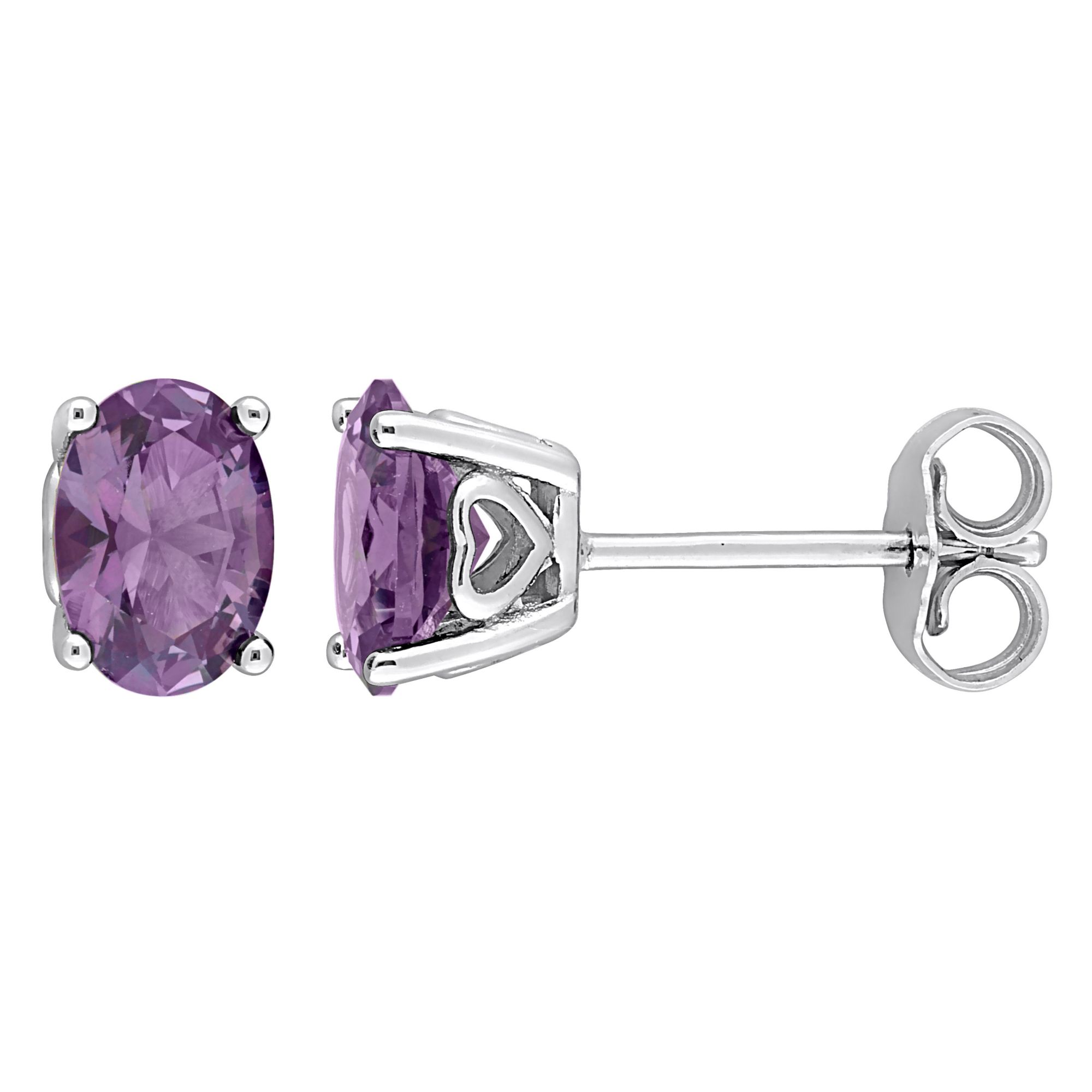 2.50 ct. t.g.w. Oval Simulated Alexandrite Stud Earrings with Heart Design in Sterling Silver