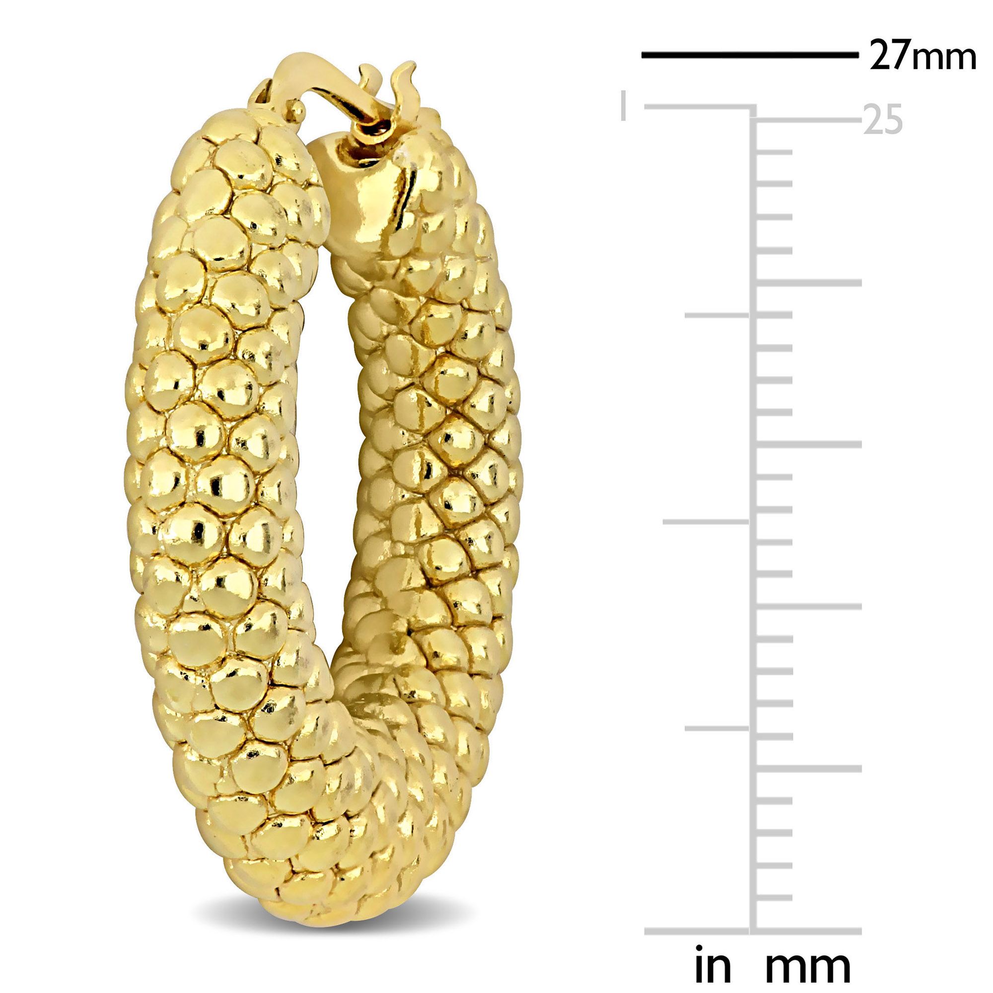 28mm Beaded Hoop Earrings in Yellow Plated Sterling Silver