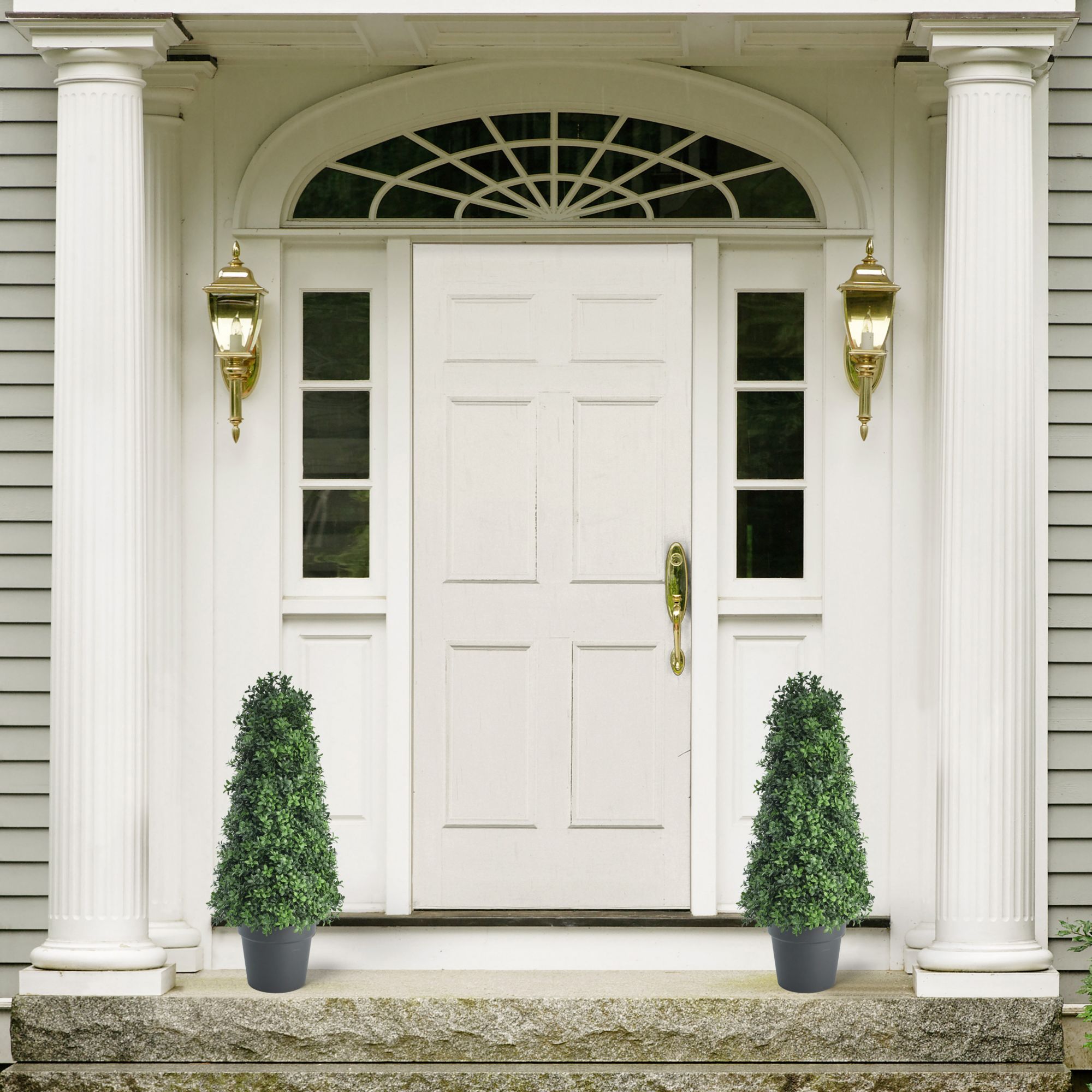 29" Faux Cone-Shaped Boxwood Topiary - Set of 2