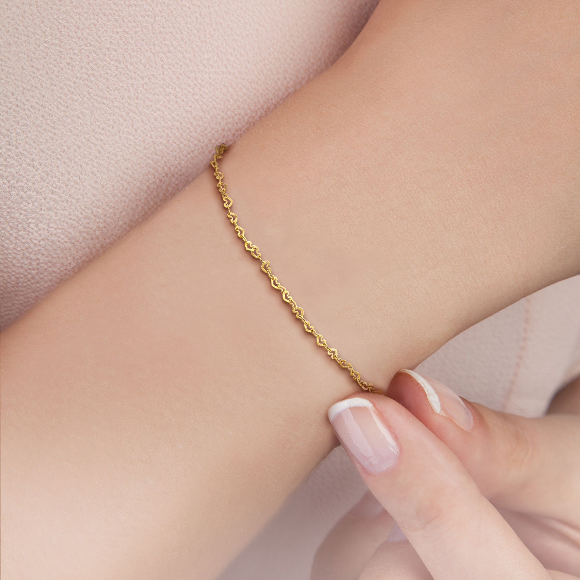 2mm Heart Link Bracelet in 14k Yellow Gold