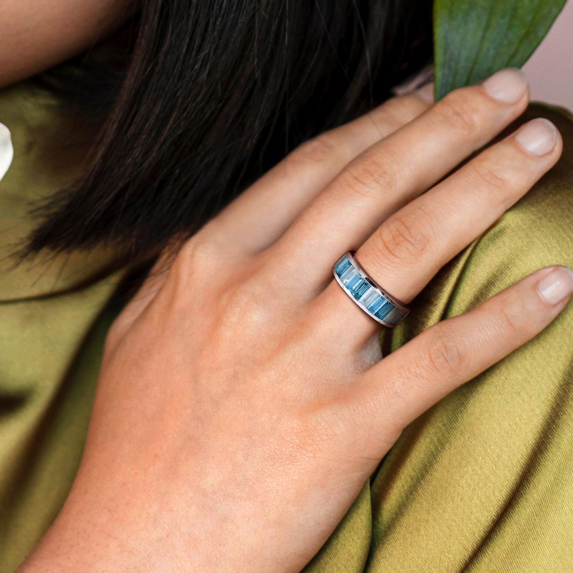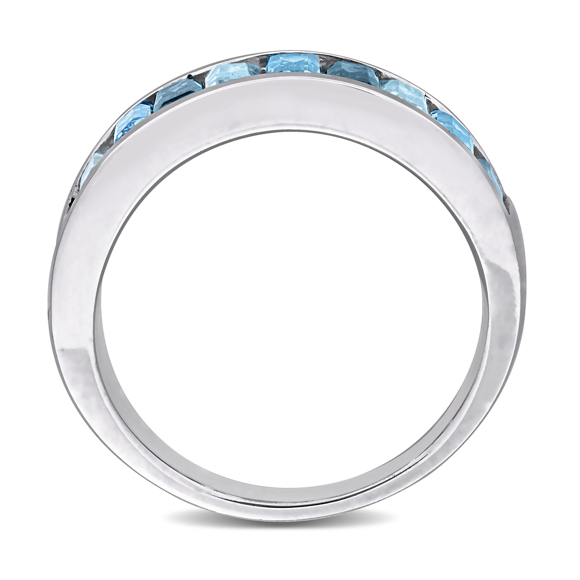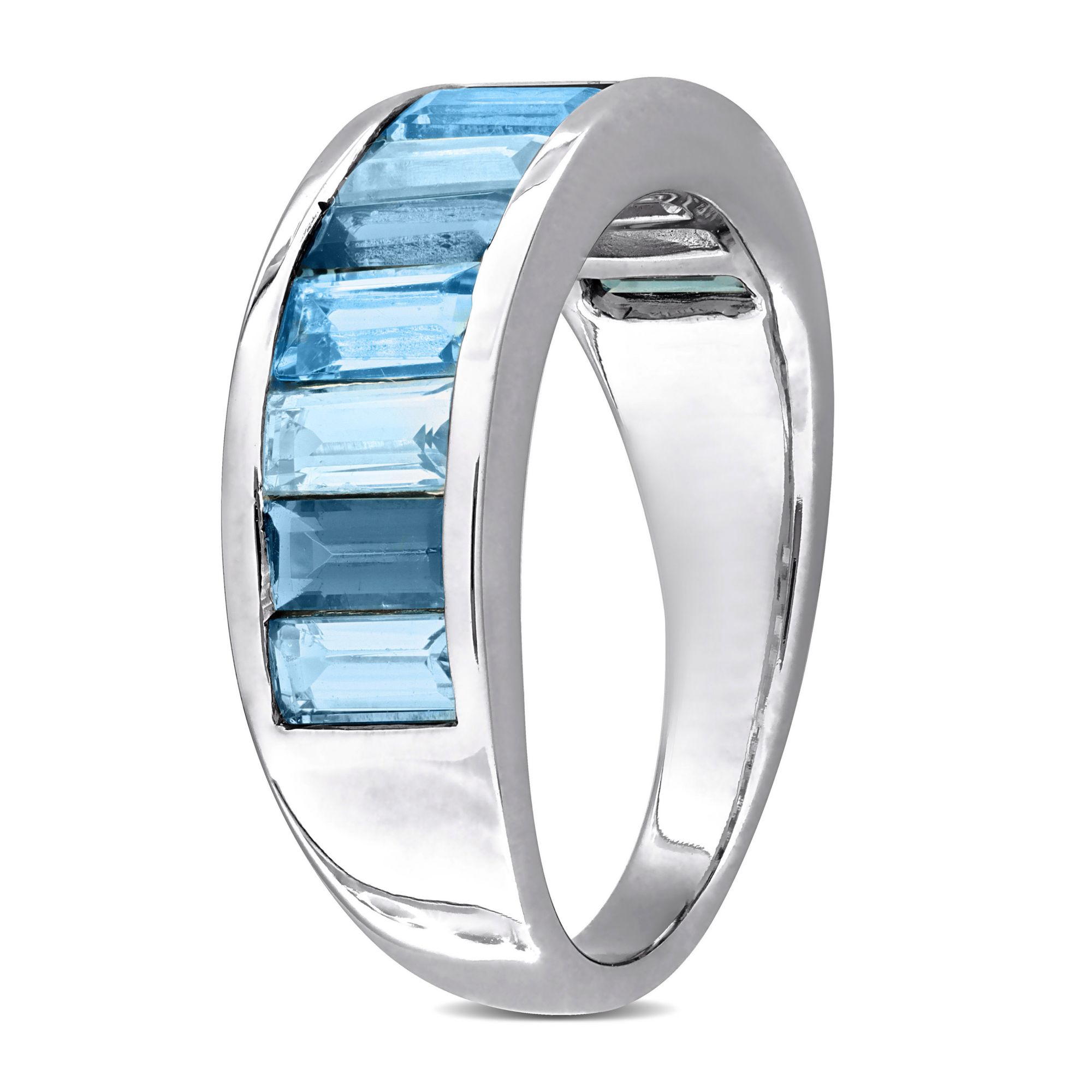 3 ct. TGW Multi-Blue Topaz Baguette Semi-Eternity Ring in Sterling Silver