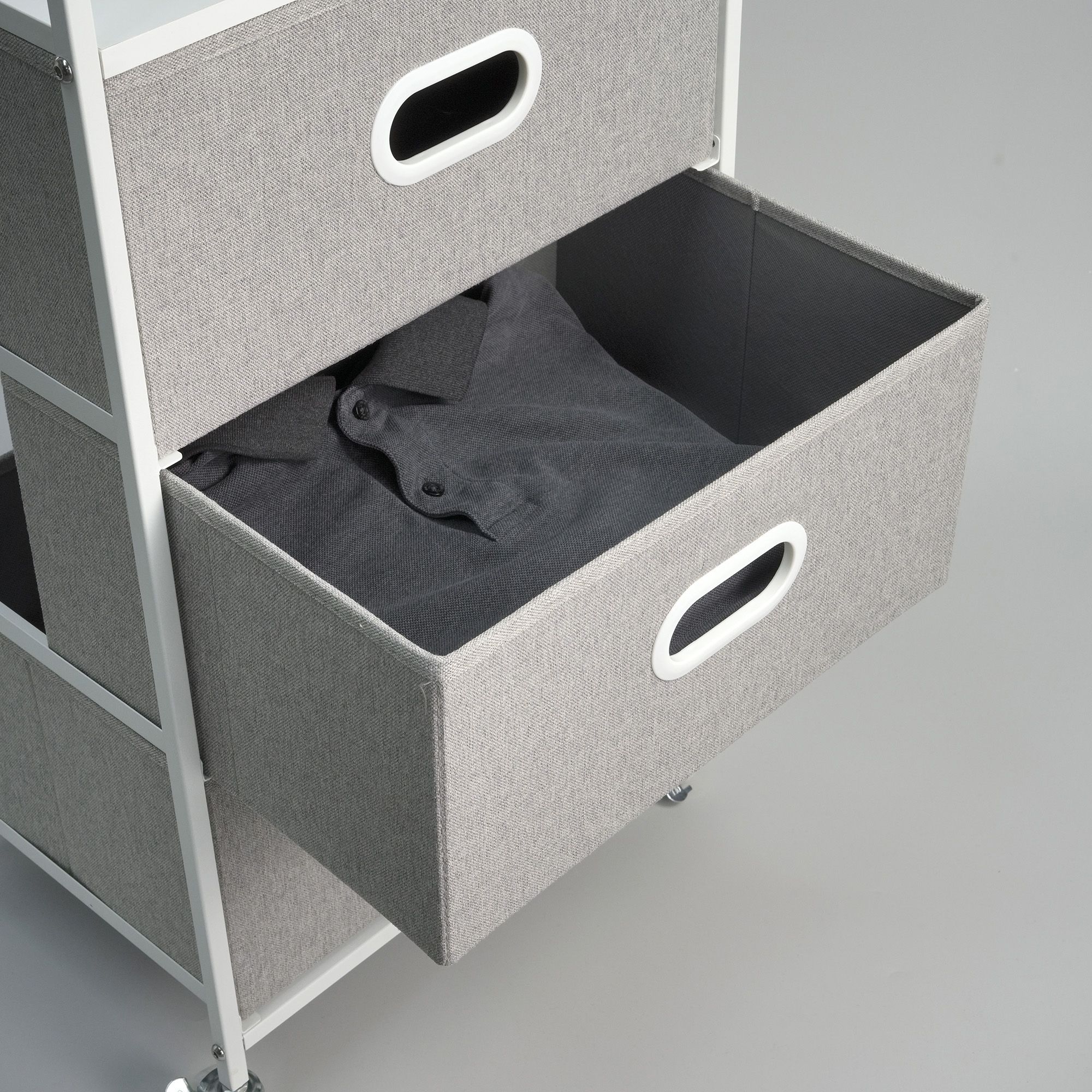 3-Drawer Rolling Cart with USB Power, Two Top Shelves, Built-in Charging Ports