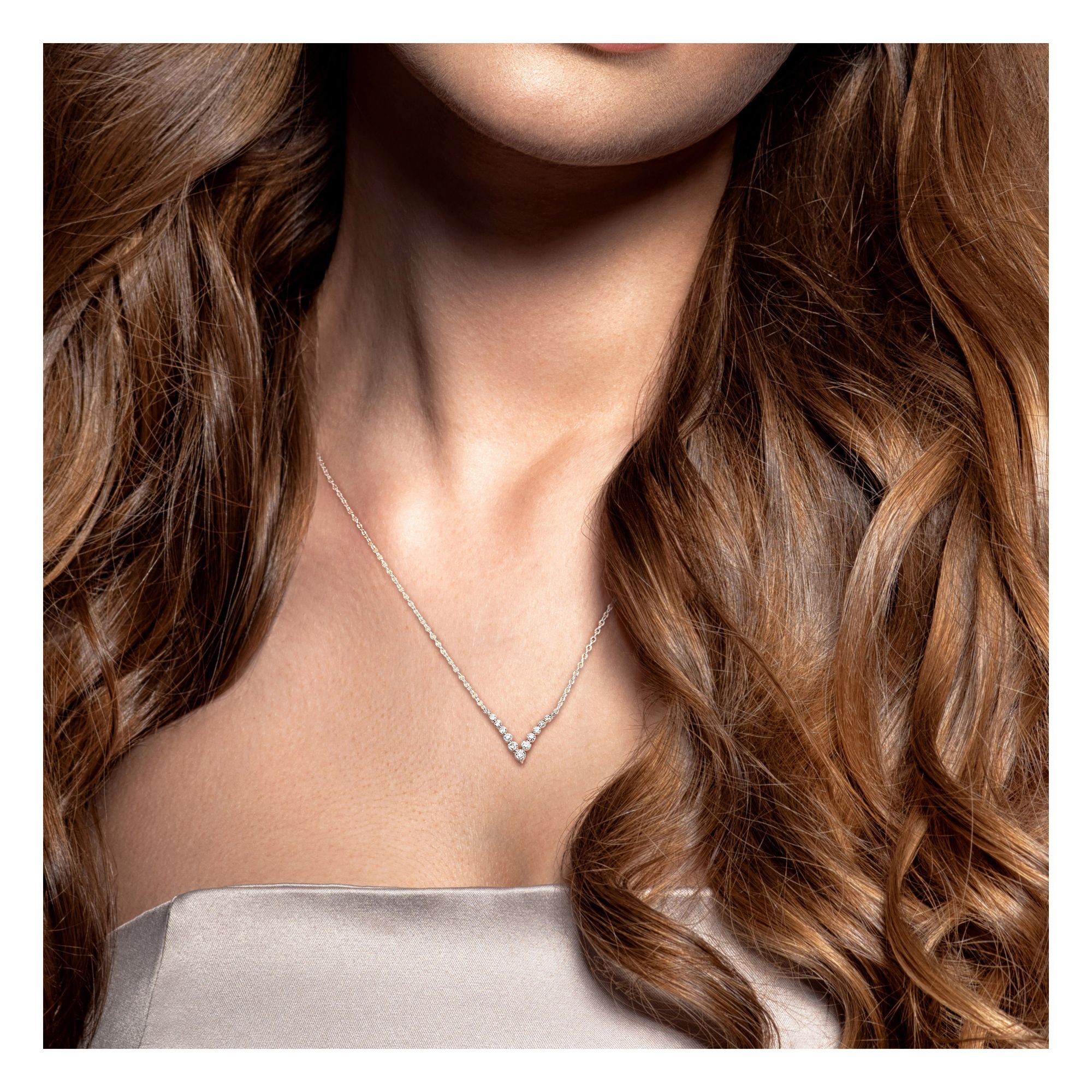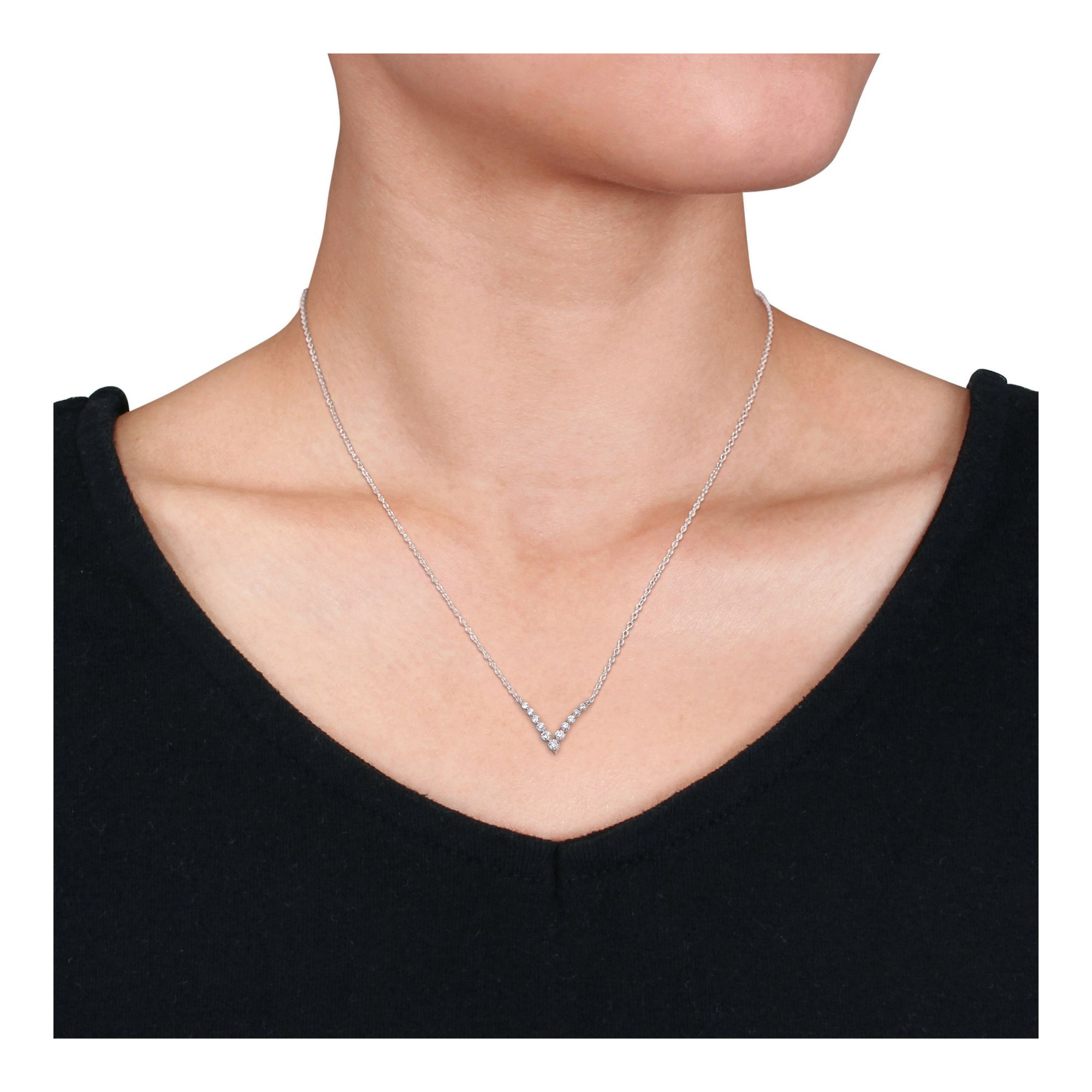 .33 ct. t.w. Lab Grown Diamond Graduated V Necklace in Platinum Plated Sterling Silver