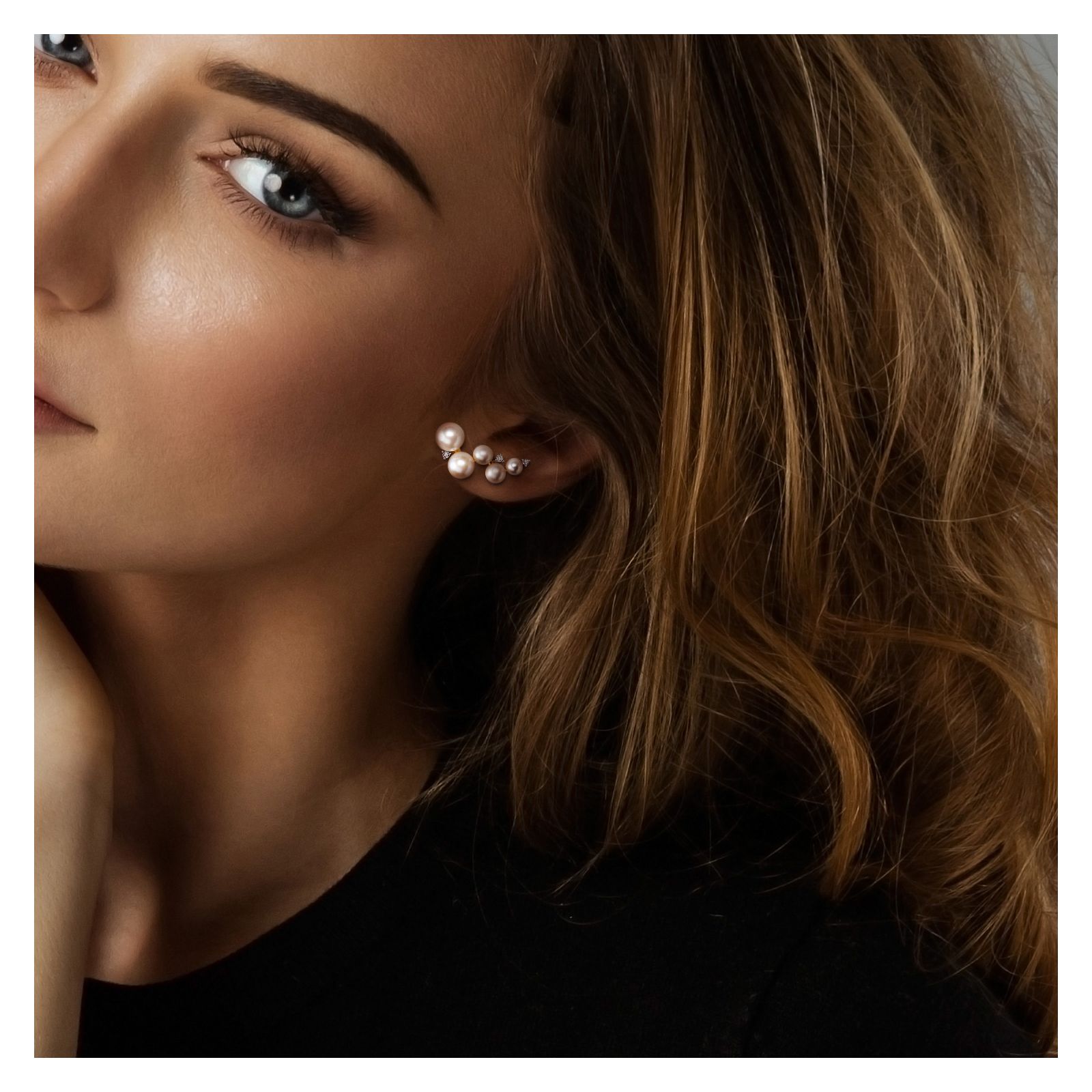 4-7mm Cultured Freshwater Pearl and 0.25 ct. t.g.w. White Topaz Climber Earrings in Yellow Gold Plated Sterling Silver