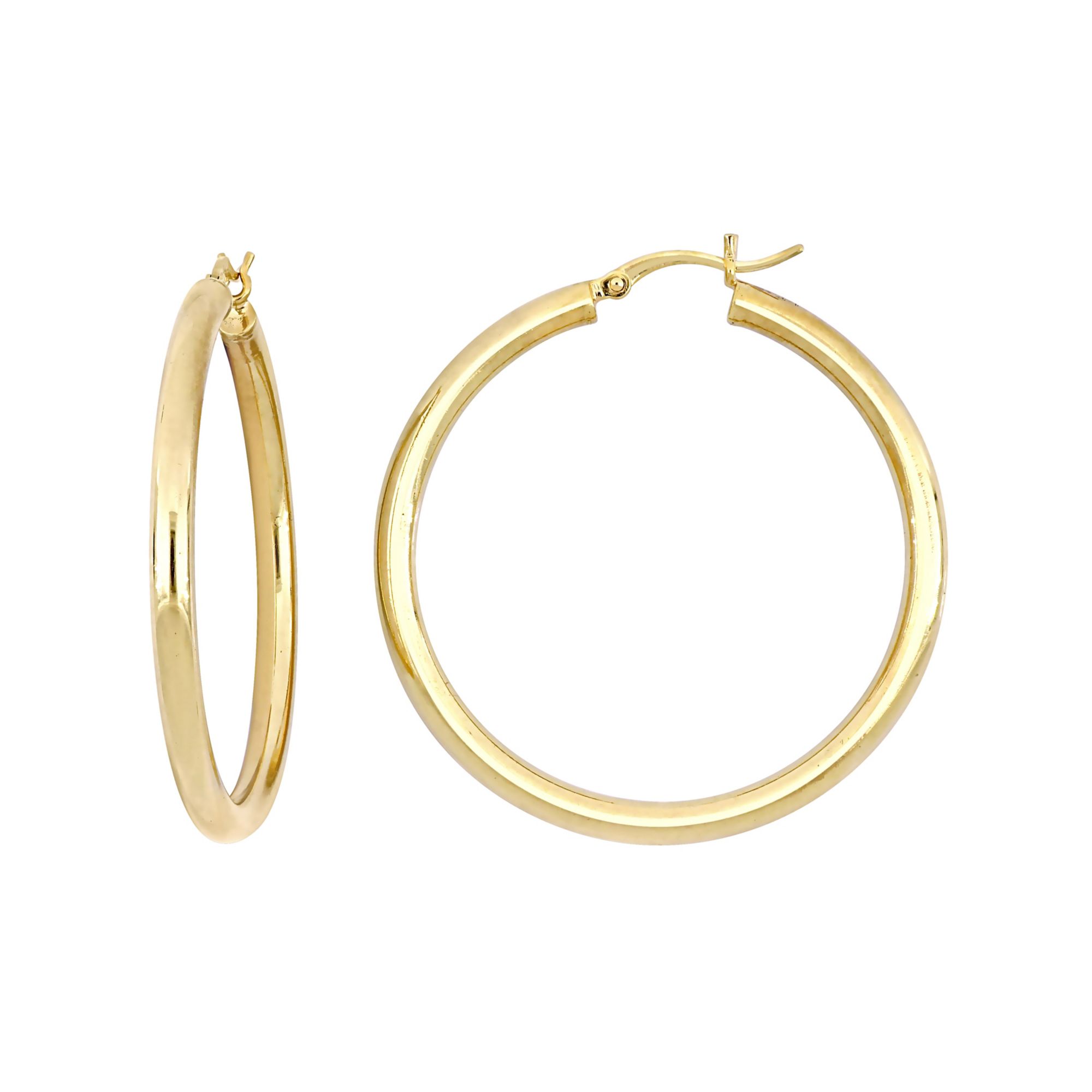 (30 Items)40mm Tube Hoop Earrings in Yellow Plated Sterling Silver