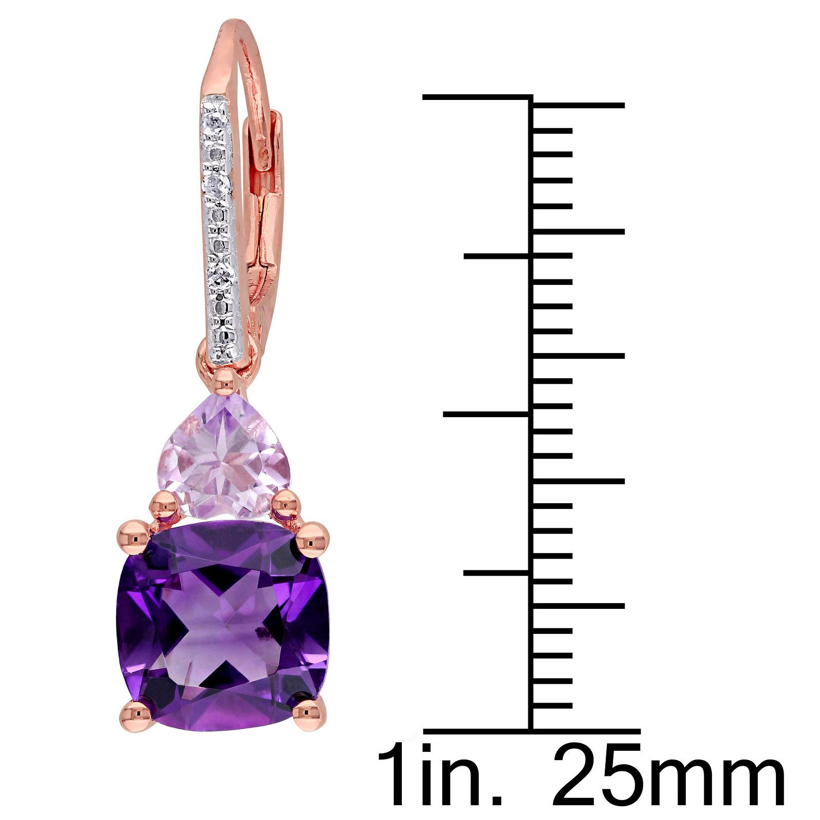 4.33 ct. t.g.w. Amethyst, Rose de France and Diamond Leverback Earrings in Rose Plated Sterling Silver