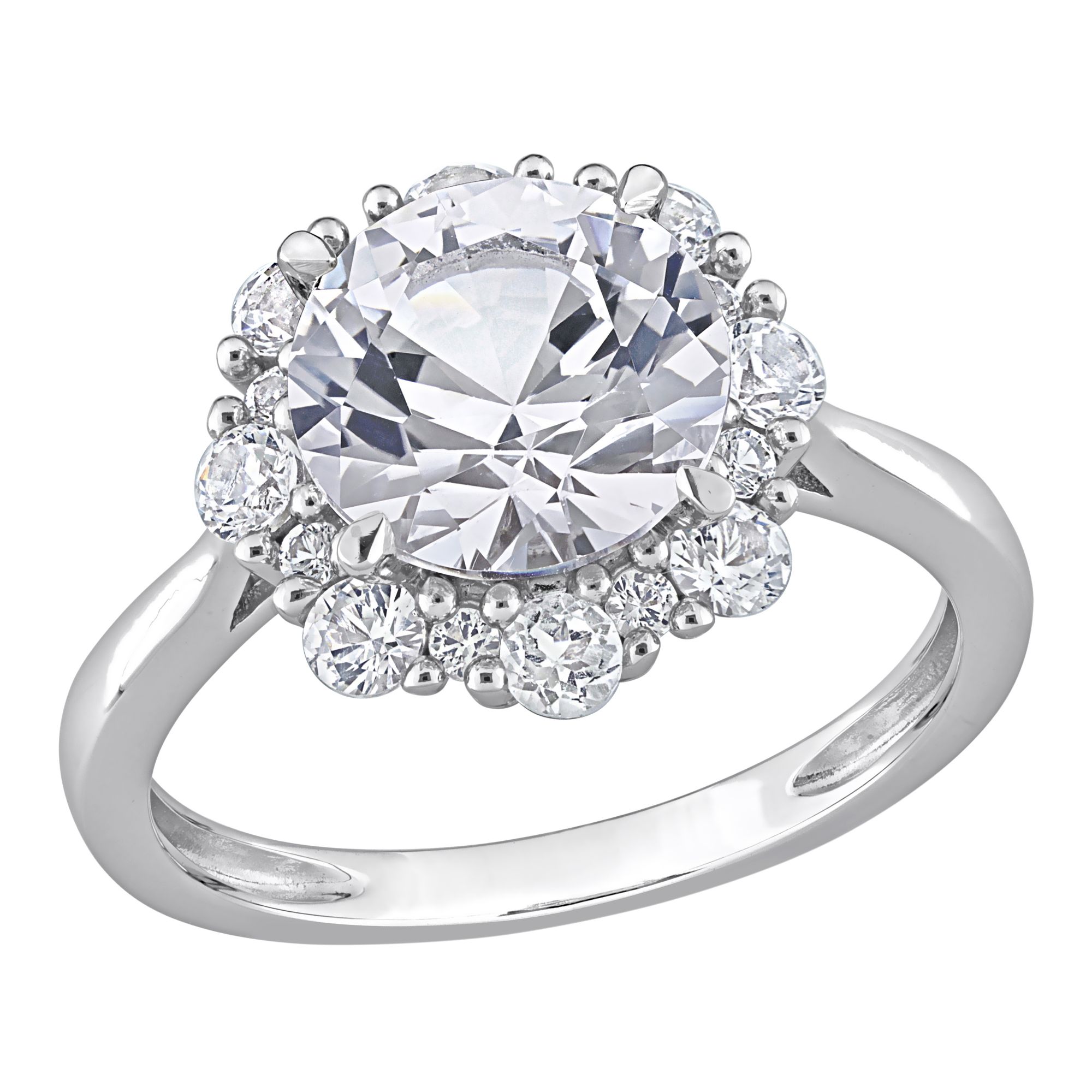 4.33 ct. t.g.w. Created White Sapphire Halo Engagement Ring in 10k White Gold