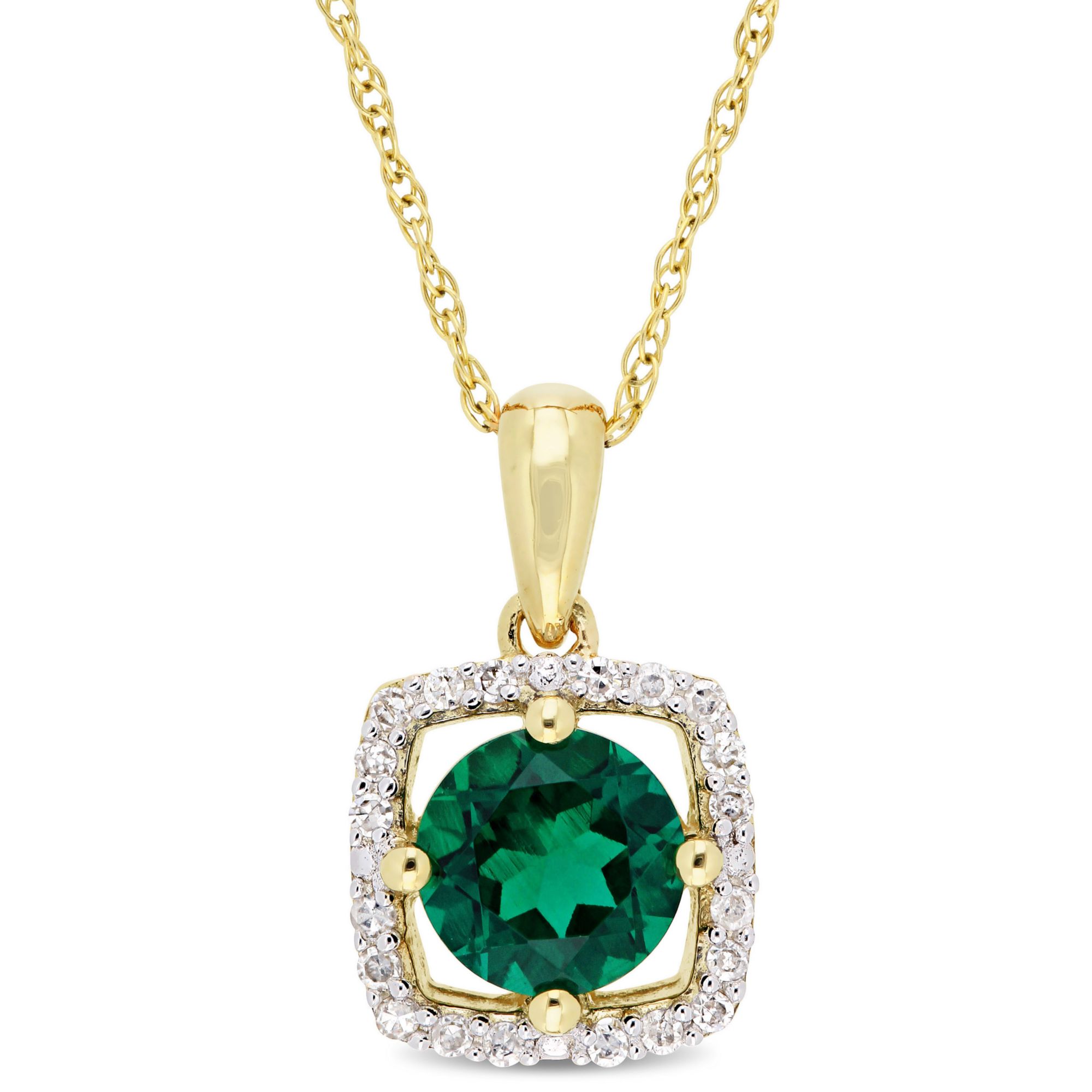4/5 ct. t.w. Emerald and Diamond Pendant in 10k Yellow Gold