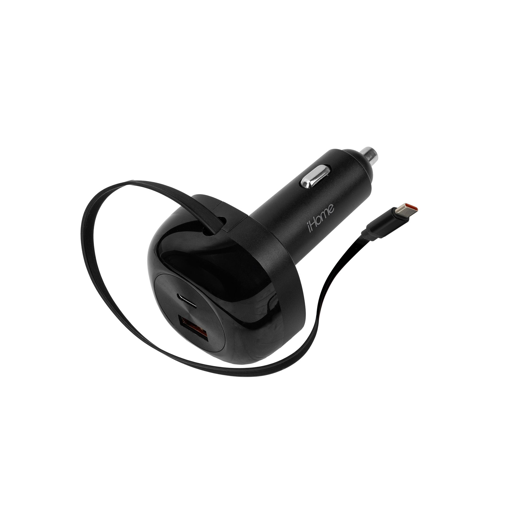 45W Dual Port Car with Retractable USB-C Cable and 1USB-A and 1 USB-C Car Charger