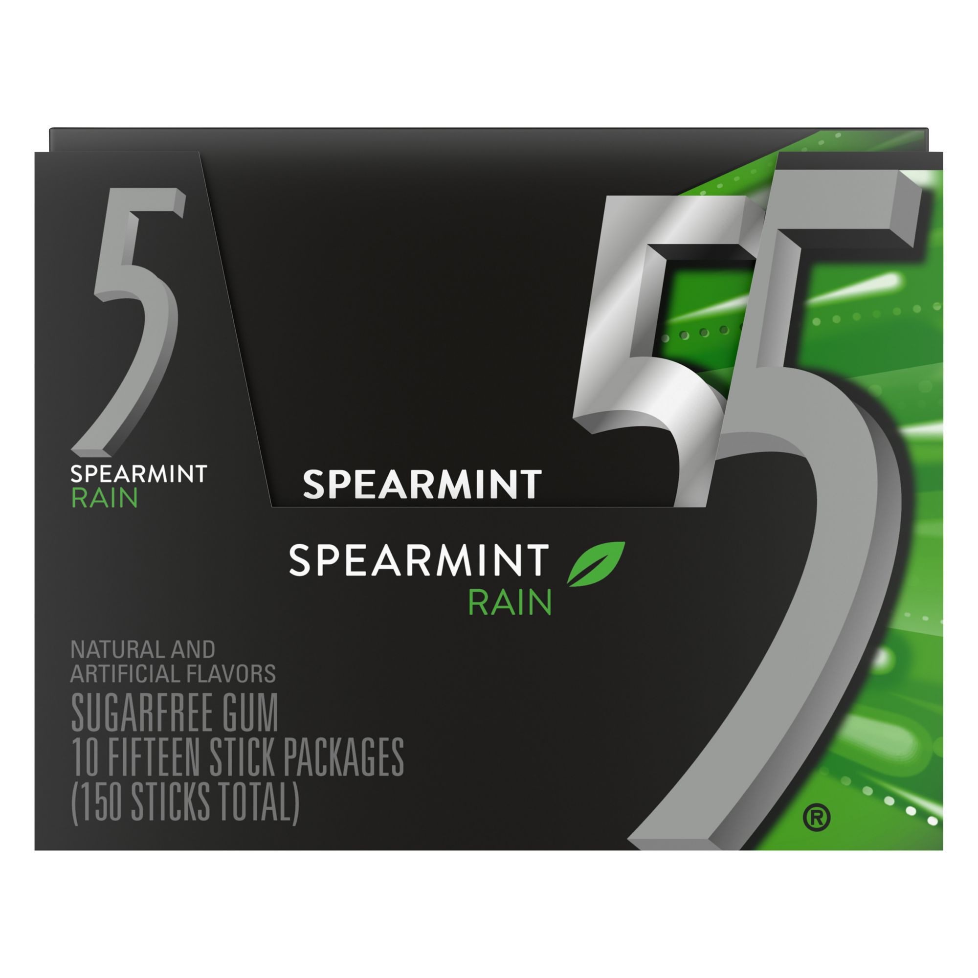 Contains ten (10) 15-stick packs of sugar free 5 Gum Spearmint Rain Chewing Gum