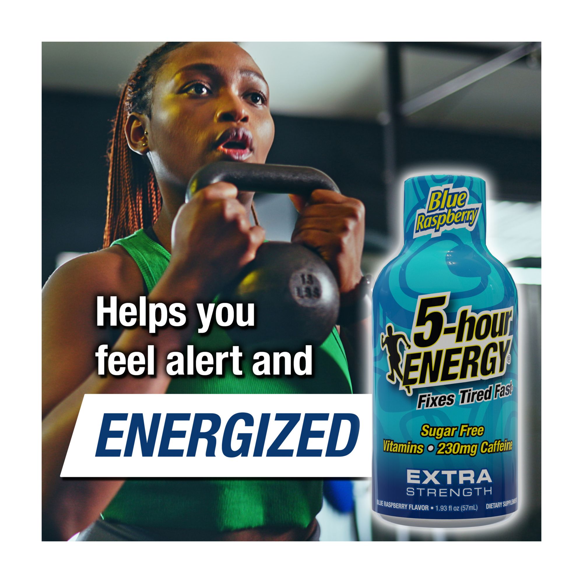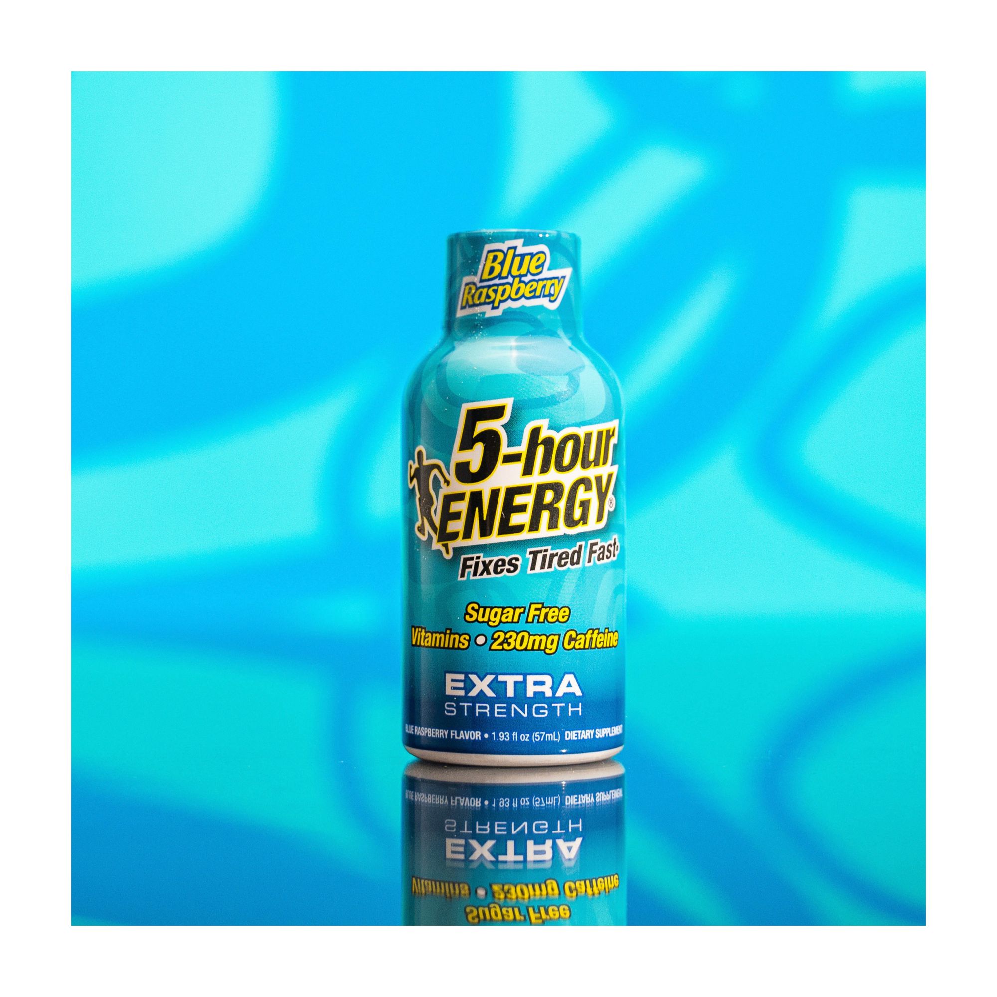 What is blue raspberry? It's not so much a thing found in nature as much as a frame of mind. It's sweet and fruity, but with a coolness that’s hard to describe, but easy to love. Try a Blue Raspberry Extra Strength 5-Hour Energy shot and you’ll understand what 5-Hour Energy means. You’ll get the alert, energized feeling you need with an Extra Strength Blue Raspberry 5-Hour Energy shot to get through your toughest day with zero sugar.