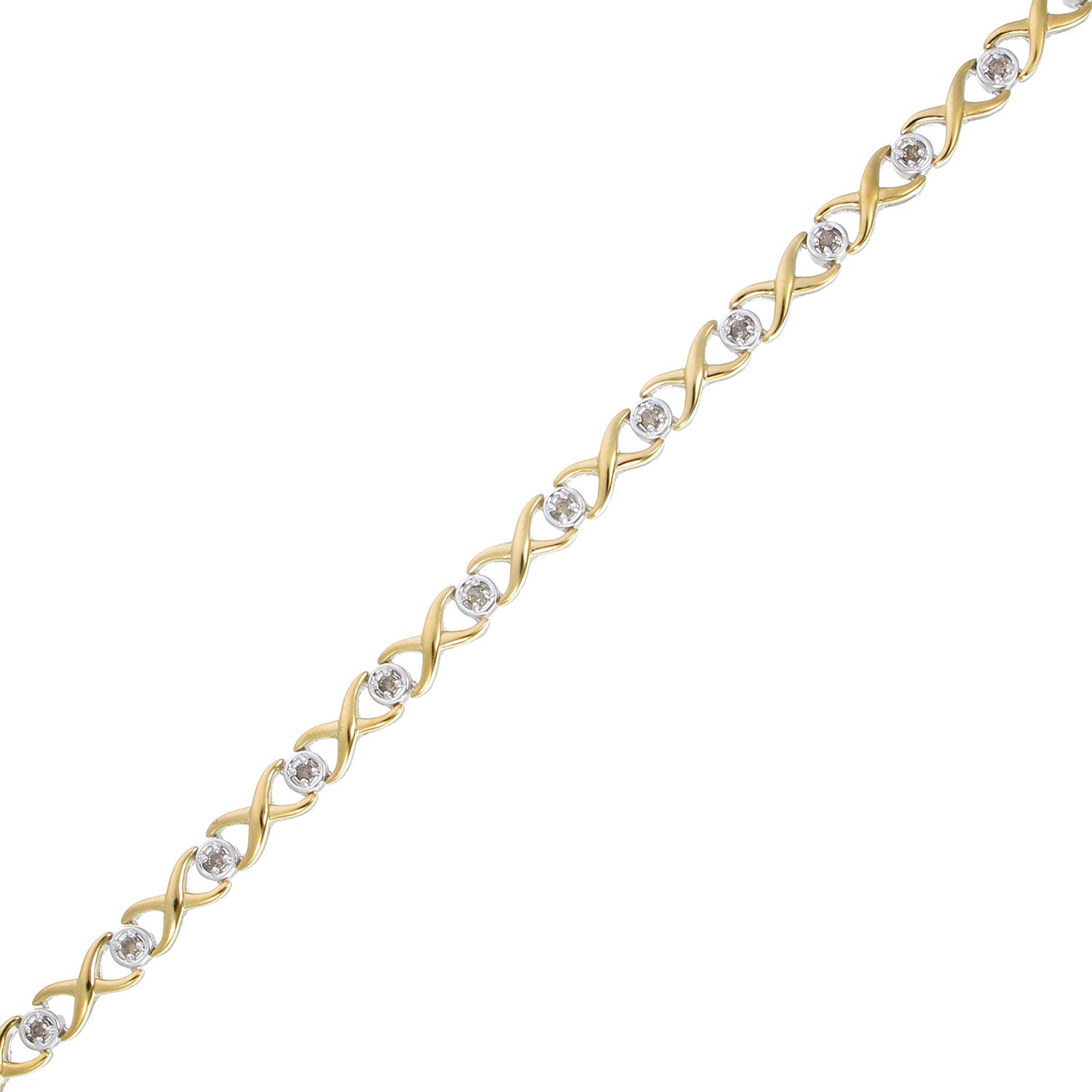 A mix of luxury and style, this infinity bracelet features round champagne diamonds prong-set in sterling silver.