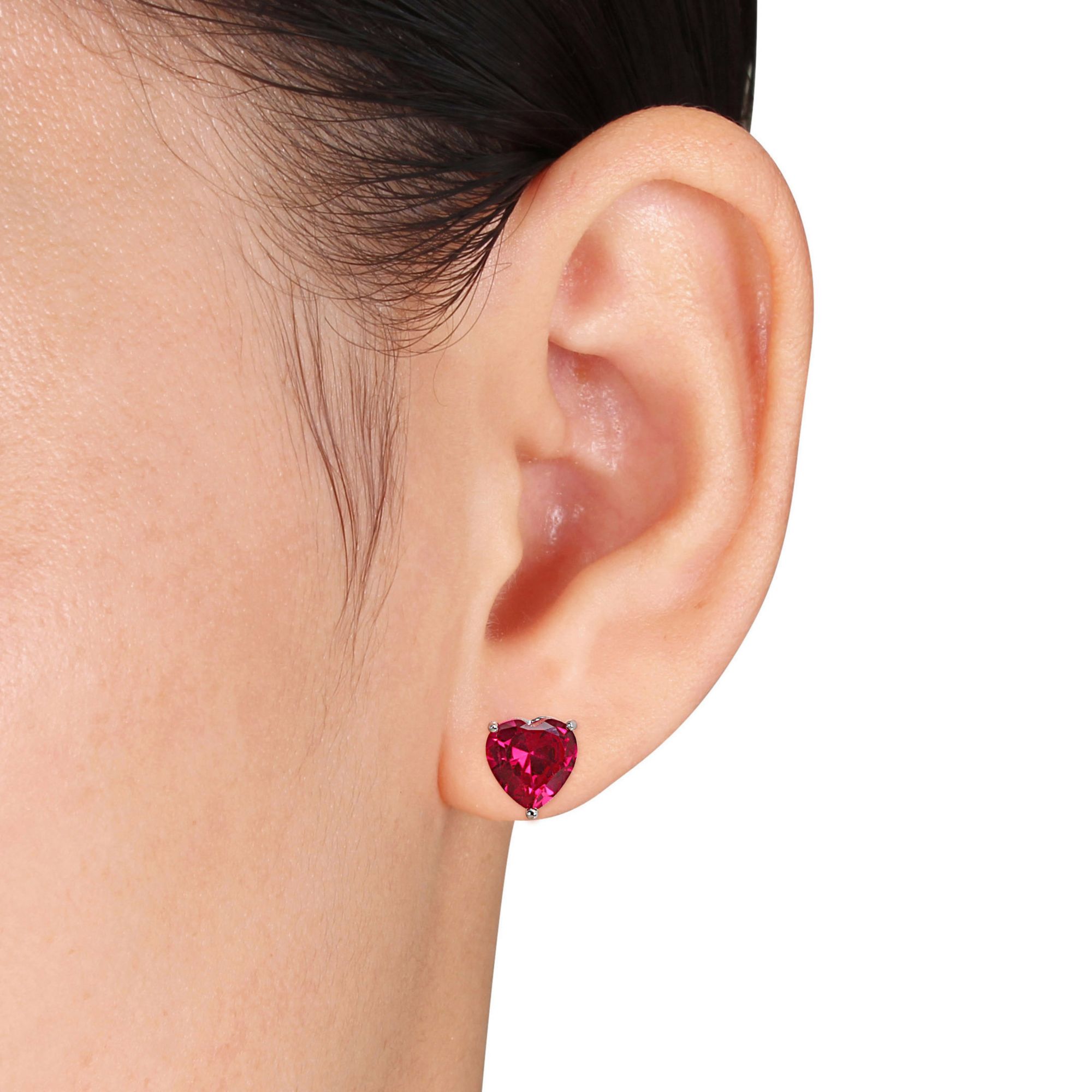 5.5 ct. t.g.w. Created Ruby Heart Stud Earrings in Sterling Silver