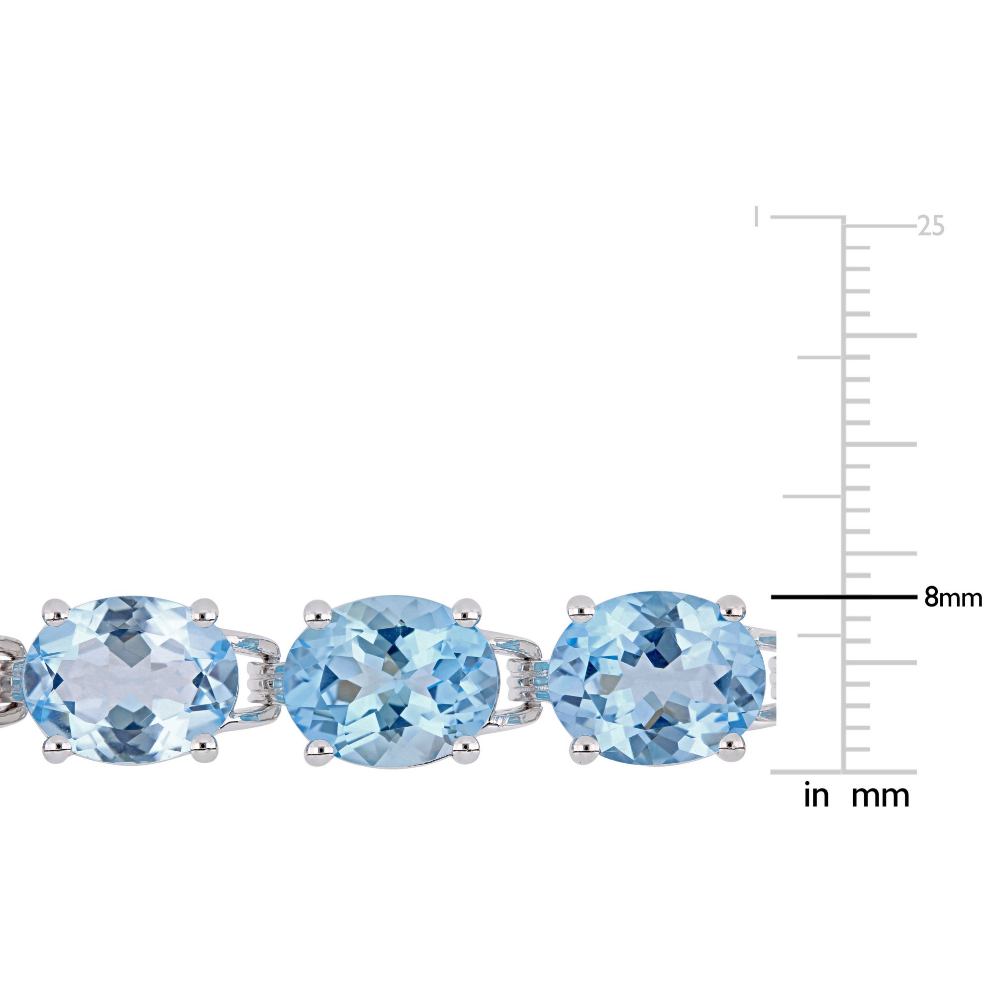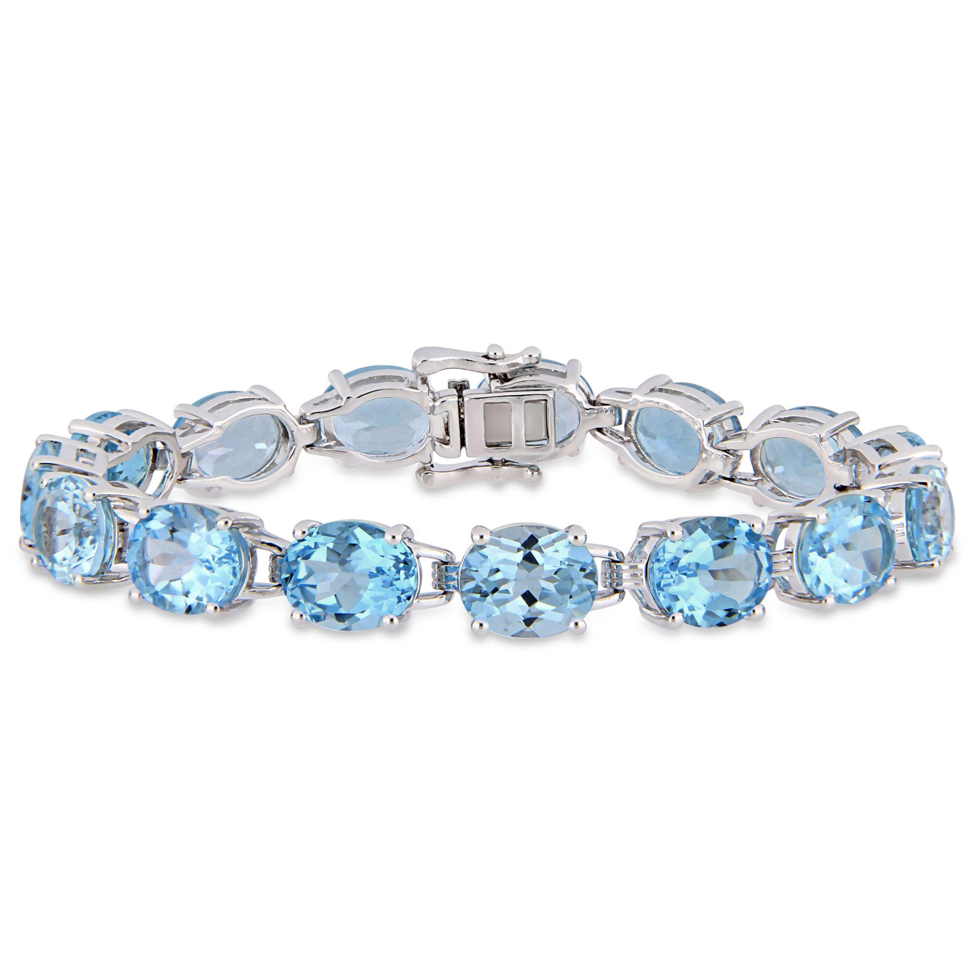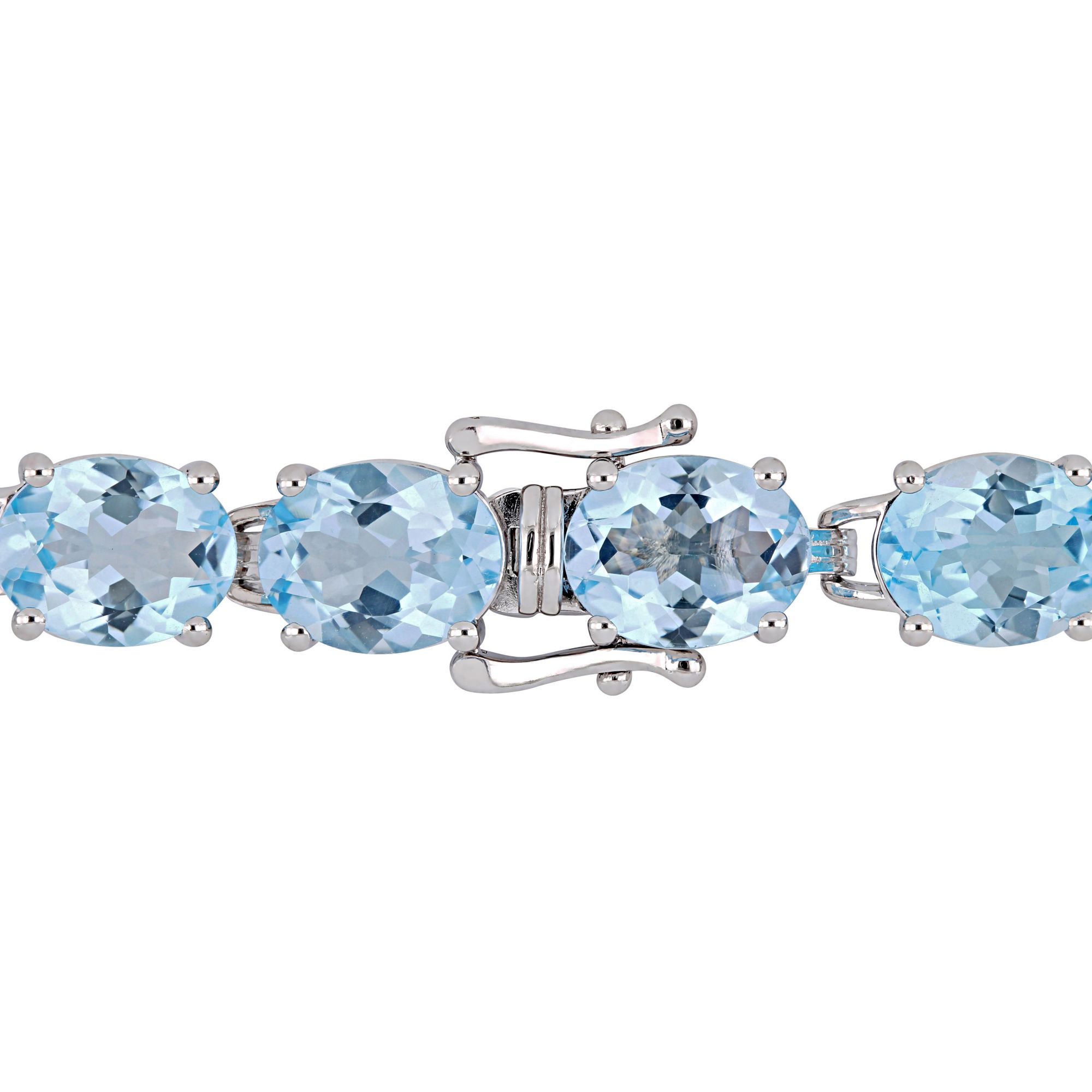 Style: Bracelet Carat/ct. t.w.: 57 ct. t.w. Cut: Oval Color: Blue Count: 15 Gemstone: Blue Topaz Lab Created: No Metal: Sterling Silver Finish: Polished Clasp/Closure: Box Clasp Size: 7.25" Includes bracelet Warranty: 30 days