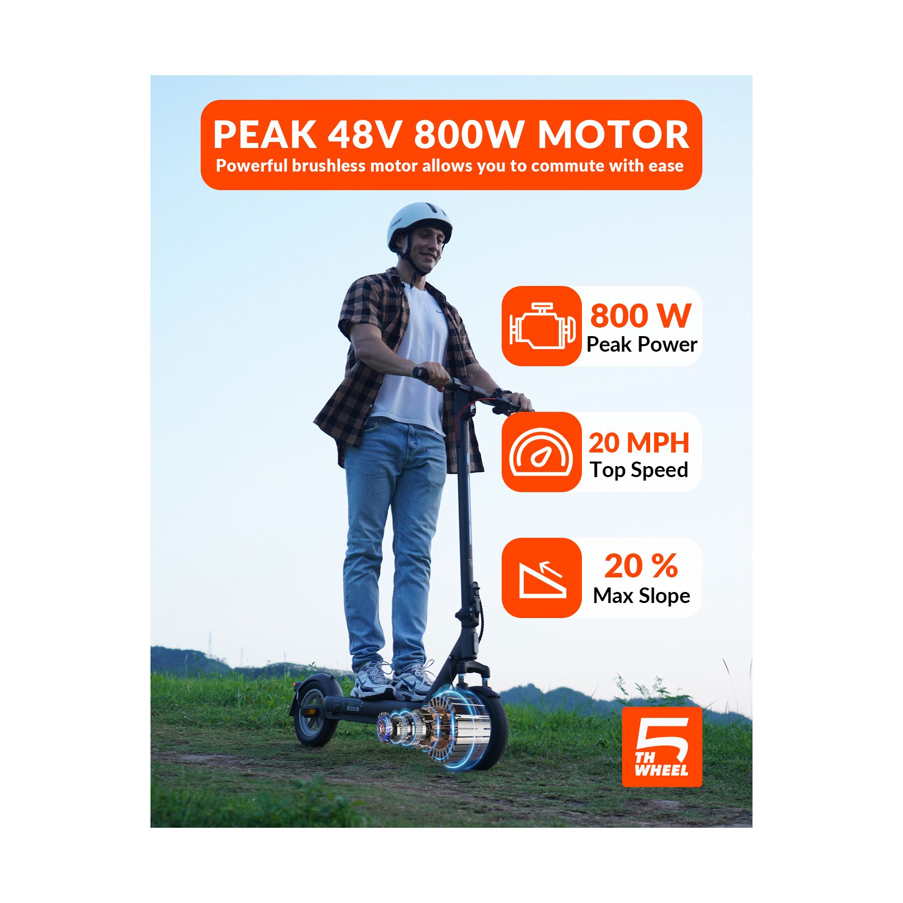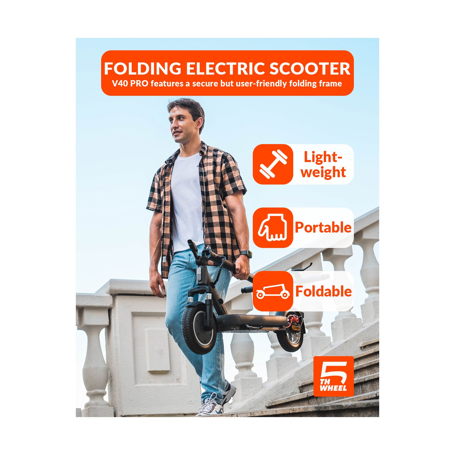 5th Wheel V40PRO Electric Scooter - 800W Peak, 20 mph Max Speed, 25 Mile Max Range