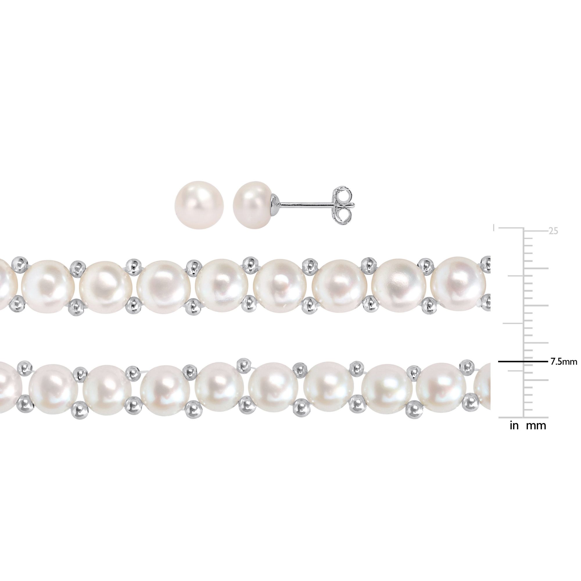 6-7mm Cultured Freshwater Pearl Strand Necklace, Bracelet and Stud Earrings Sterling Silver 3-Pc. Set