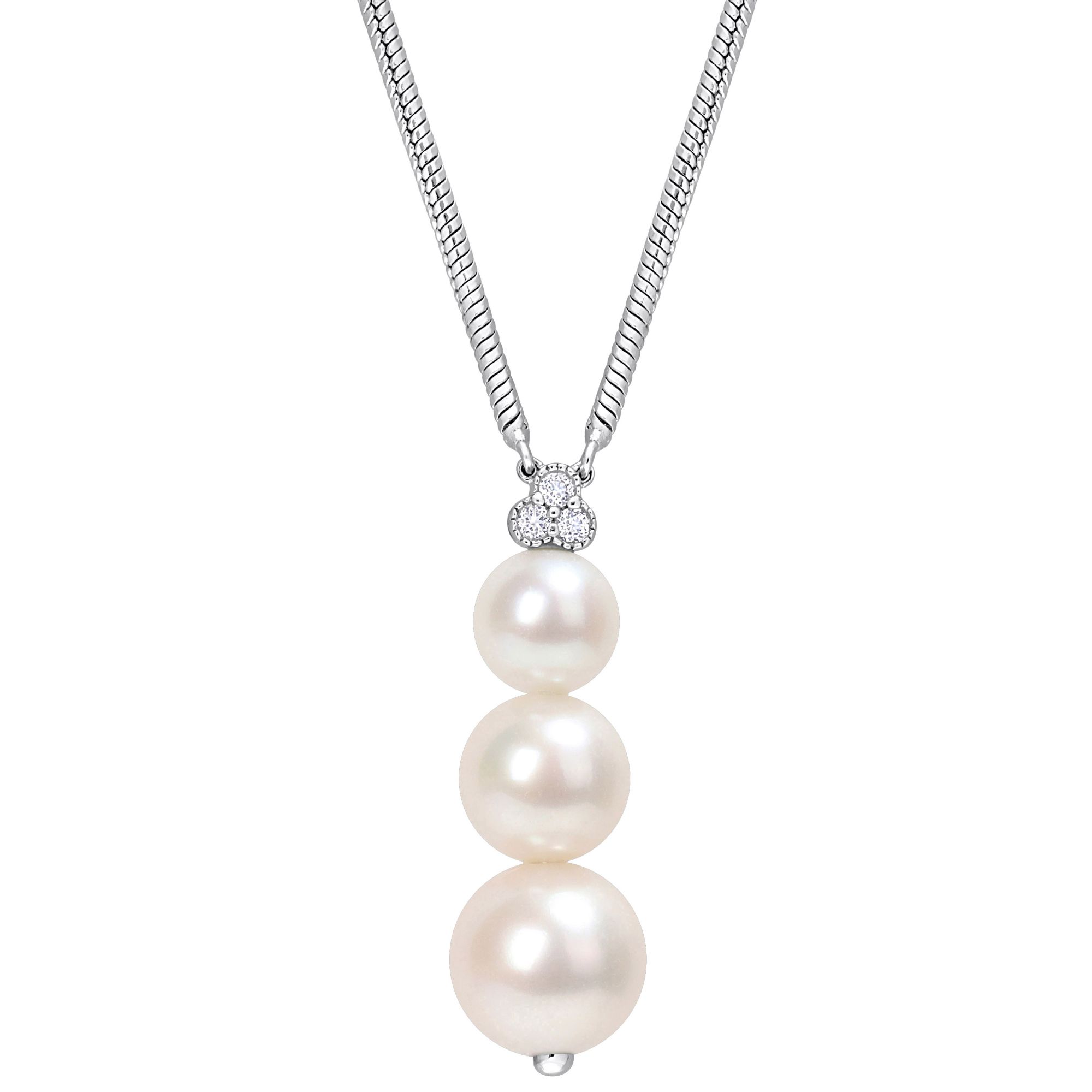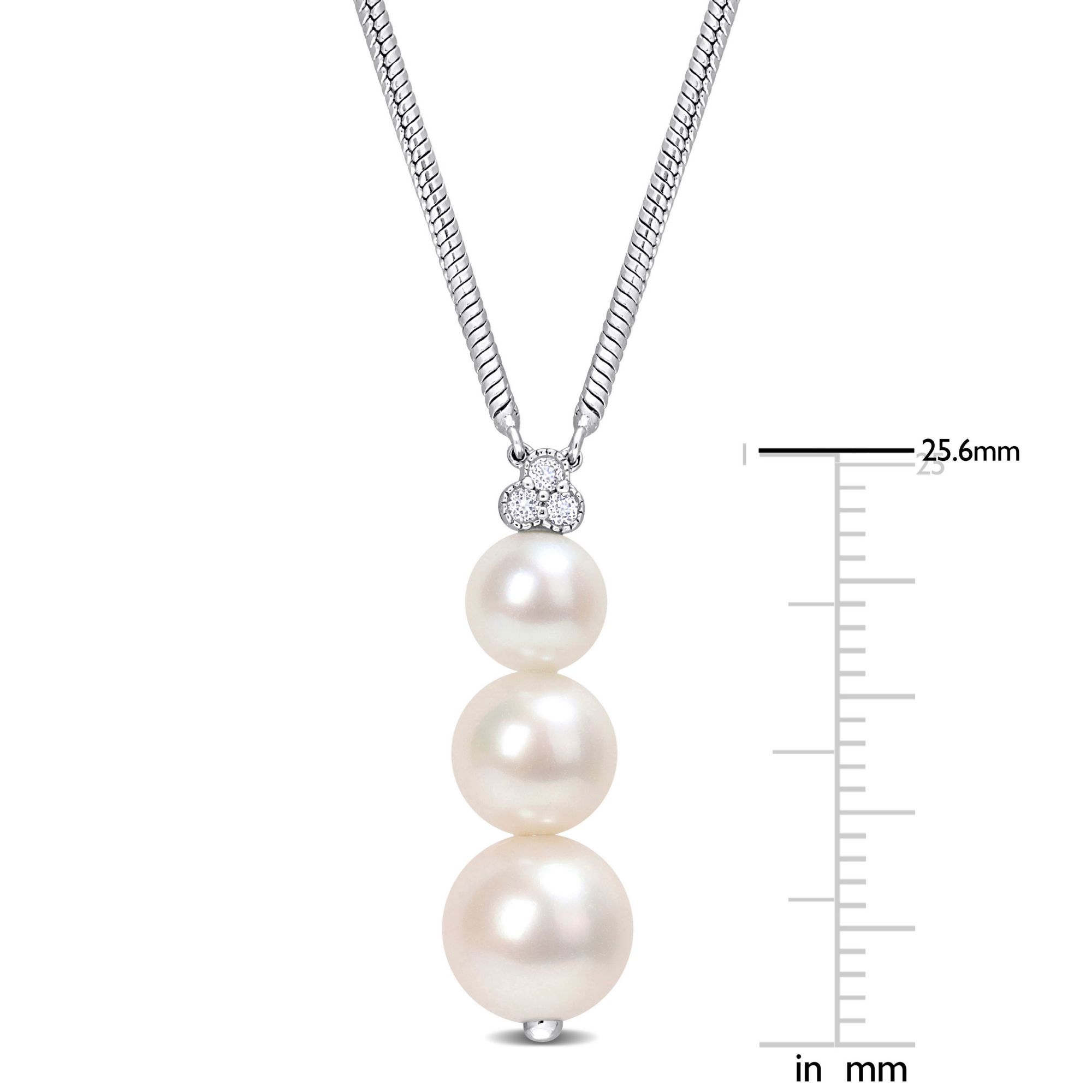 6-8.5mm Cultured Freshwater Pearl and 0.1 ct. t.g.w. White Topaz Drop Necklace in Sterling Silver