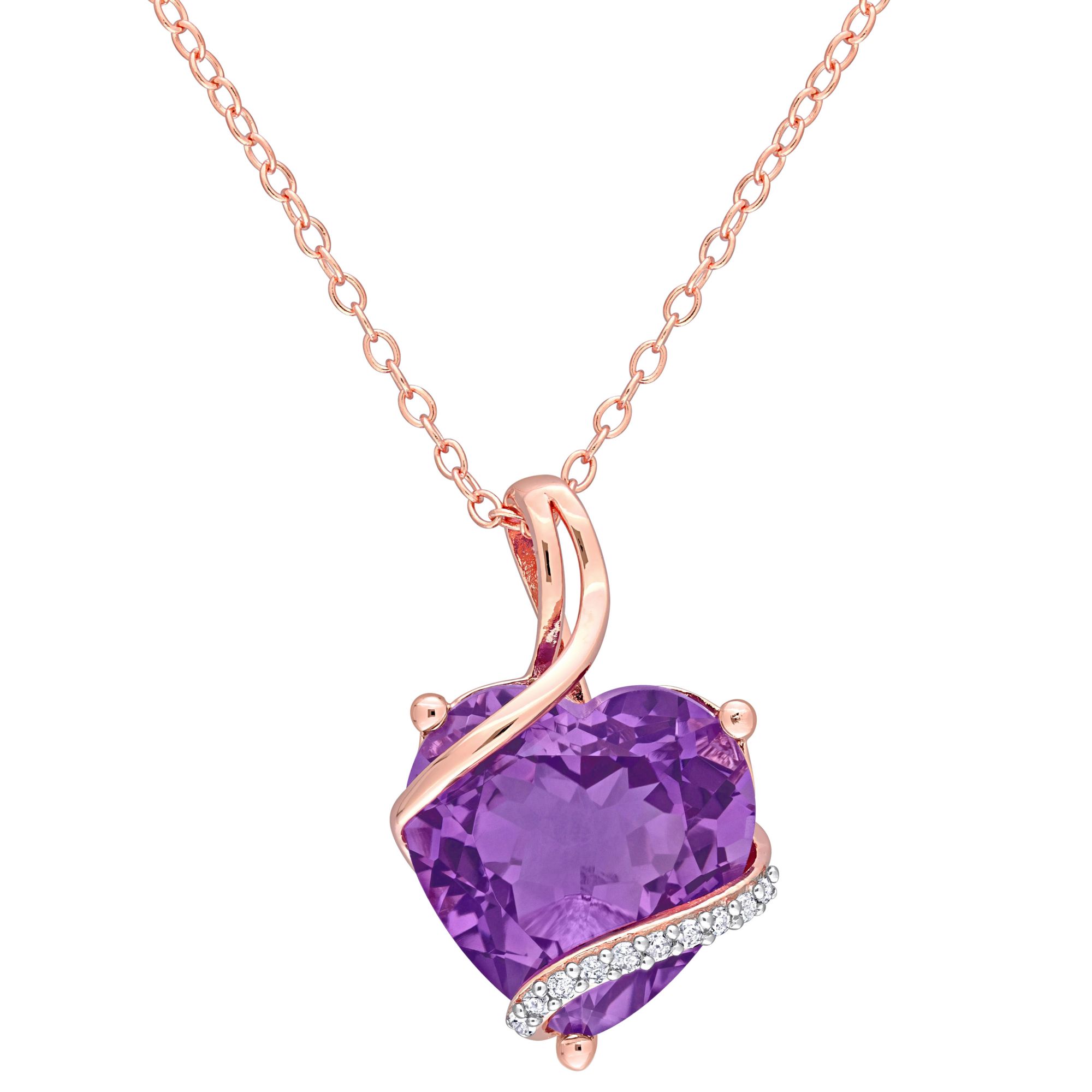 6.5 ct. t.g.w. Amethyst and Diamond Accent Heart Wrapped Necklace in Rose Plated Sterling Silver