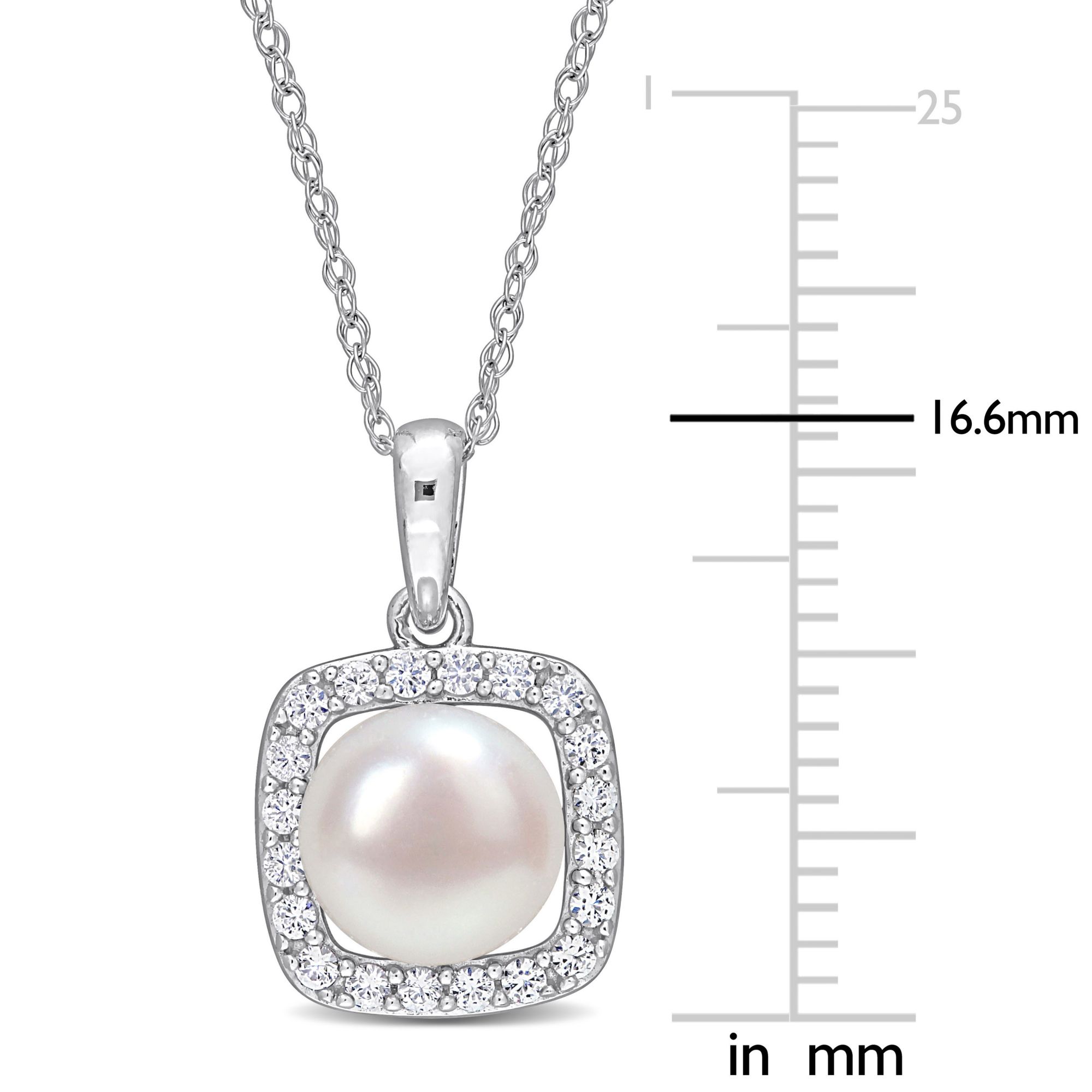 Set in 10k white gold 7-7.5mm cultured freshwater pearl 0.2 ct. t.g.w. created white sapphire Chain length: 17" Includes pearl and white sapphire necklace