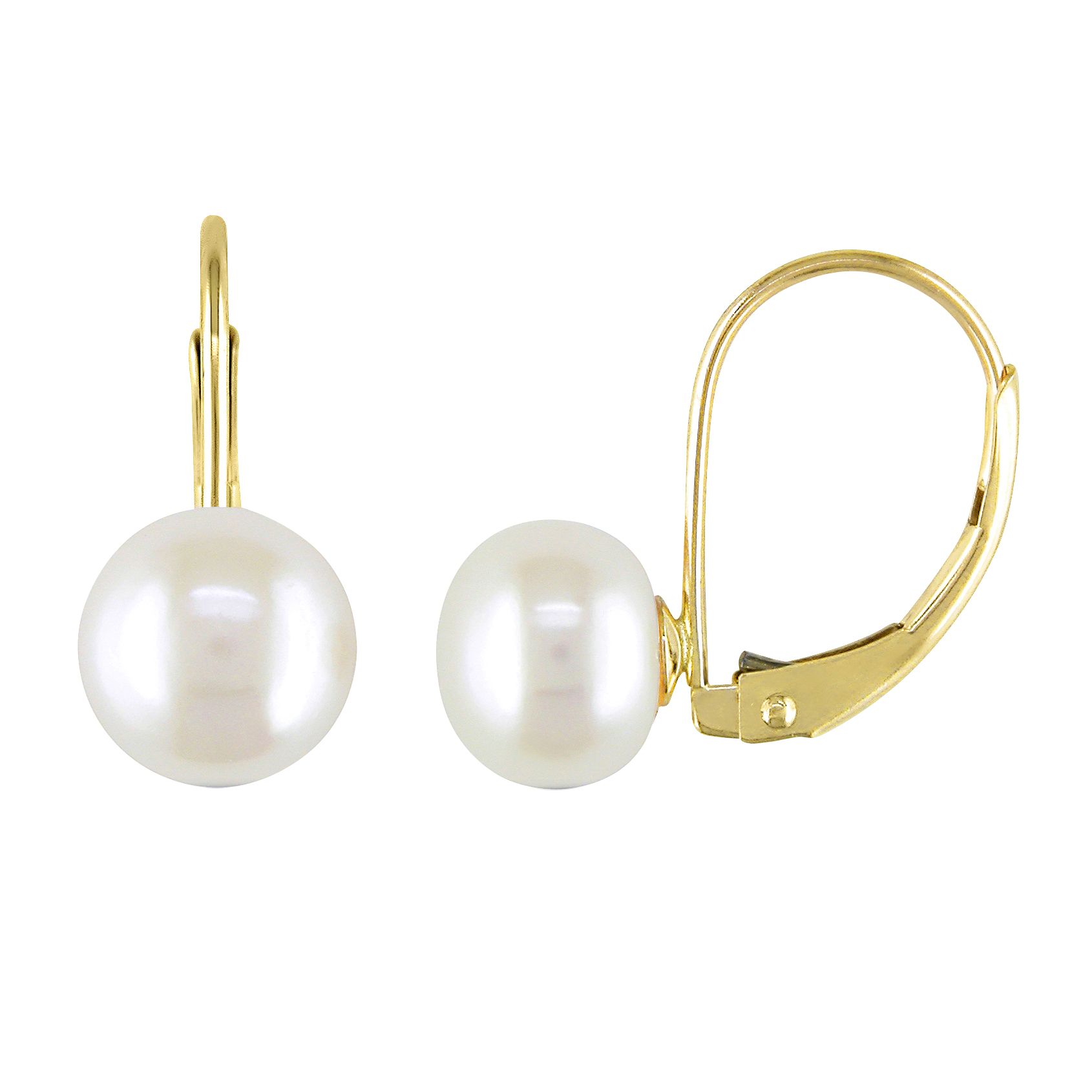 7-7.5mm Cultured Freshwater Pearl Drop Earrings in 10k Yellow Gold