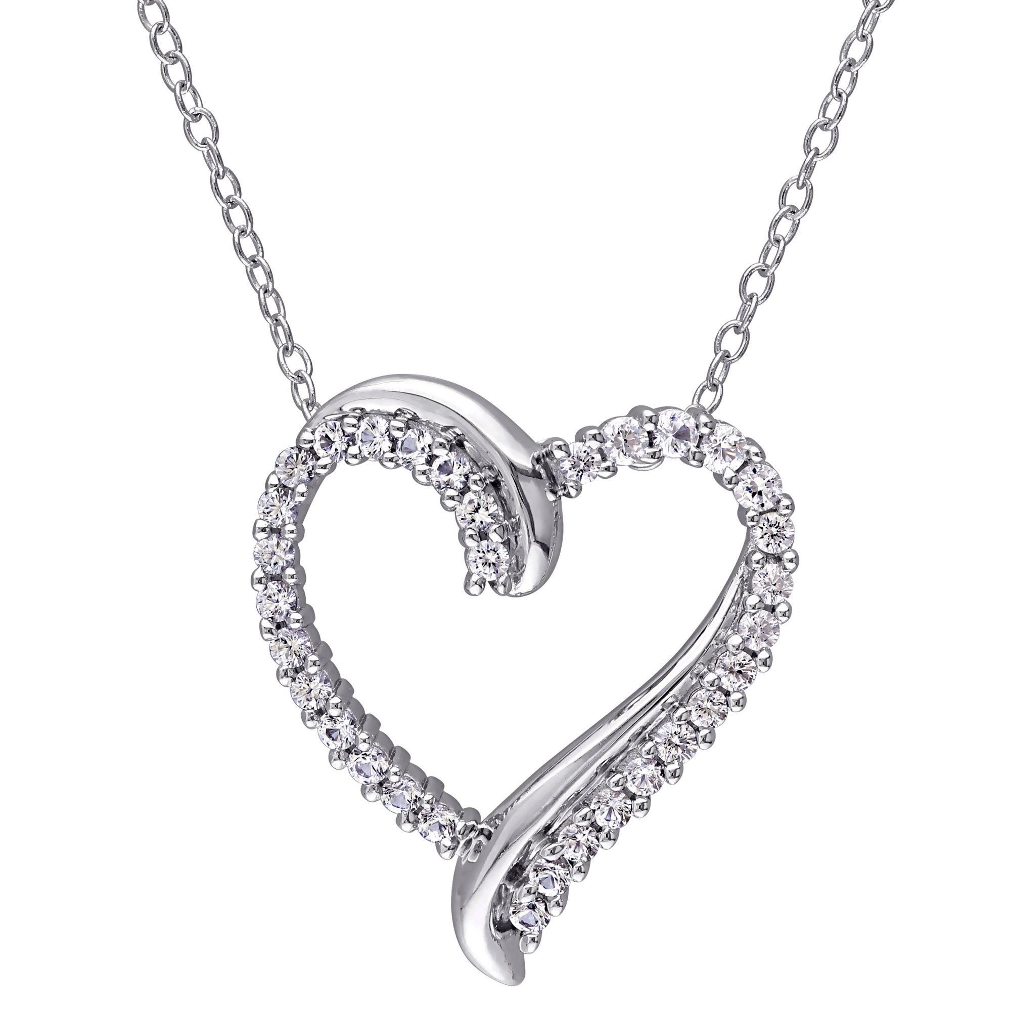 .75 ct. t.g.w. Created White Sapphire Crossover Heart Necklace in Sterling Silver