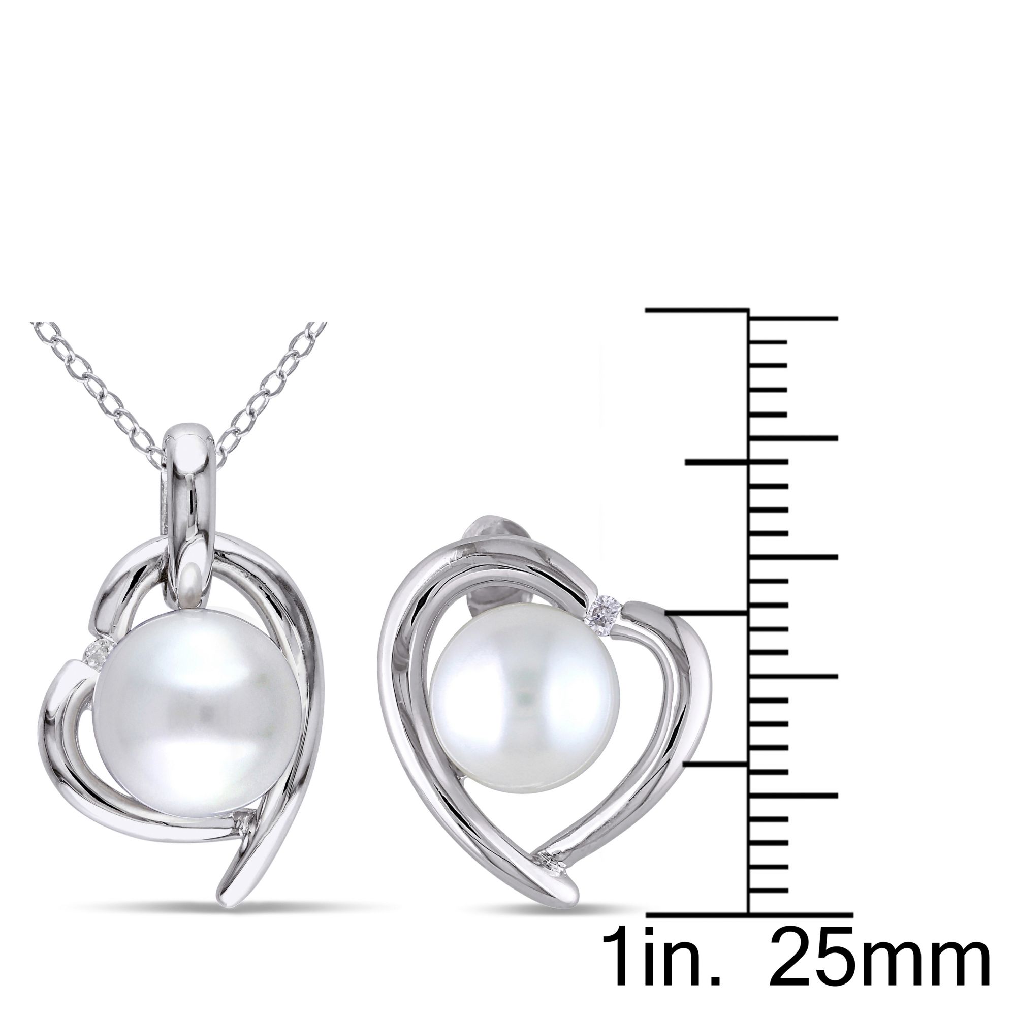 8.5-9 mm Cultured Freshwater Pearl and Diamond Heart Stud Earrings and Necklace in Sterling Silver 2-Pc. Set