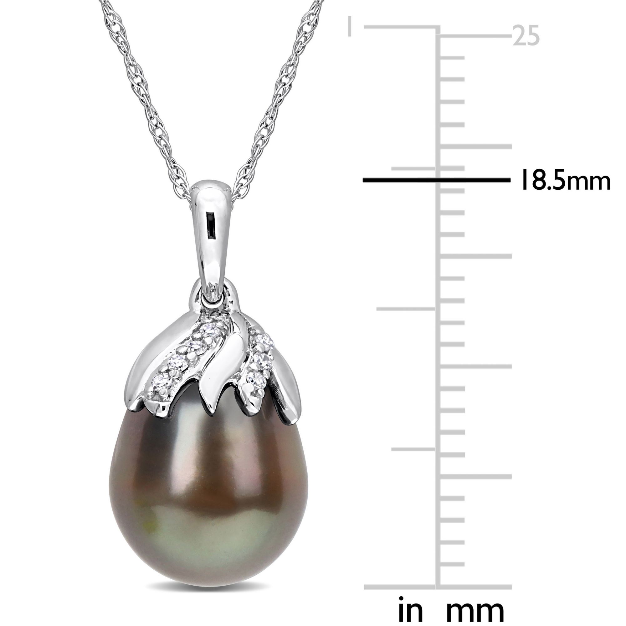 9-10mm Tahitian Cultured Pearl & Diamond Accent Necklace in 14k White Gold