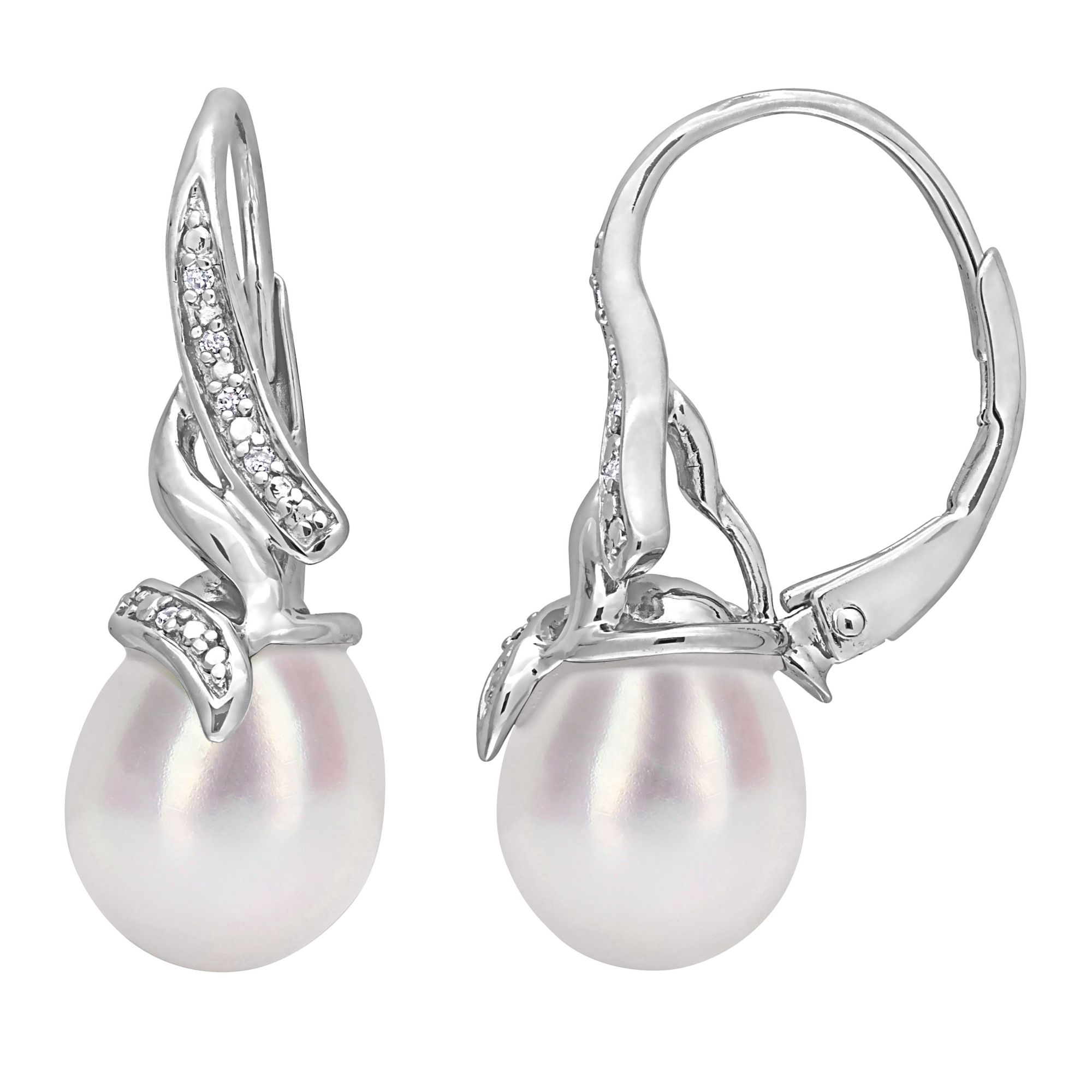 9-9.5 mm Cultured Freshwater Pearl and Diamond Twist Drop Earrings in Sterling Silver