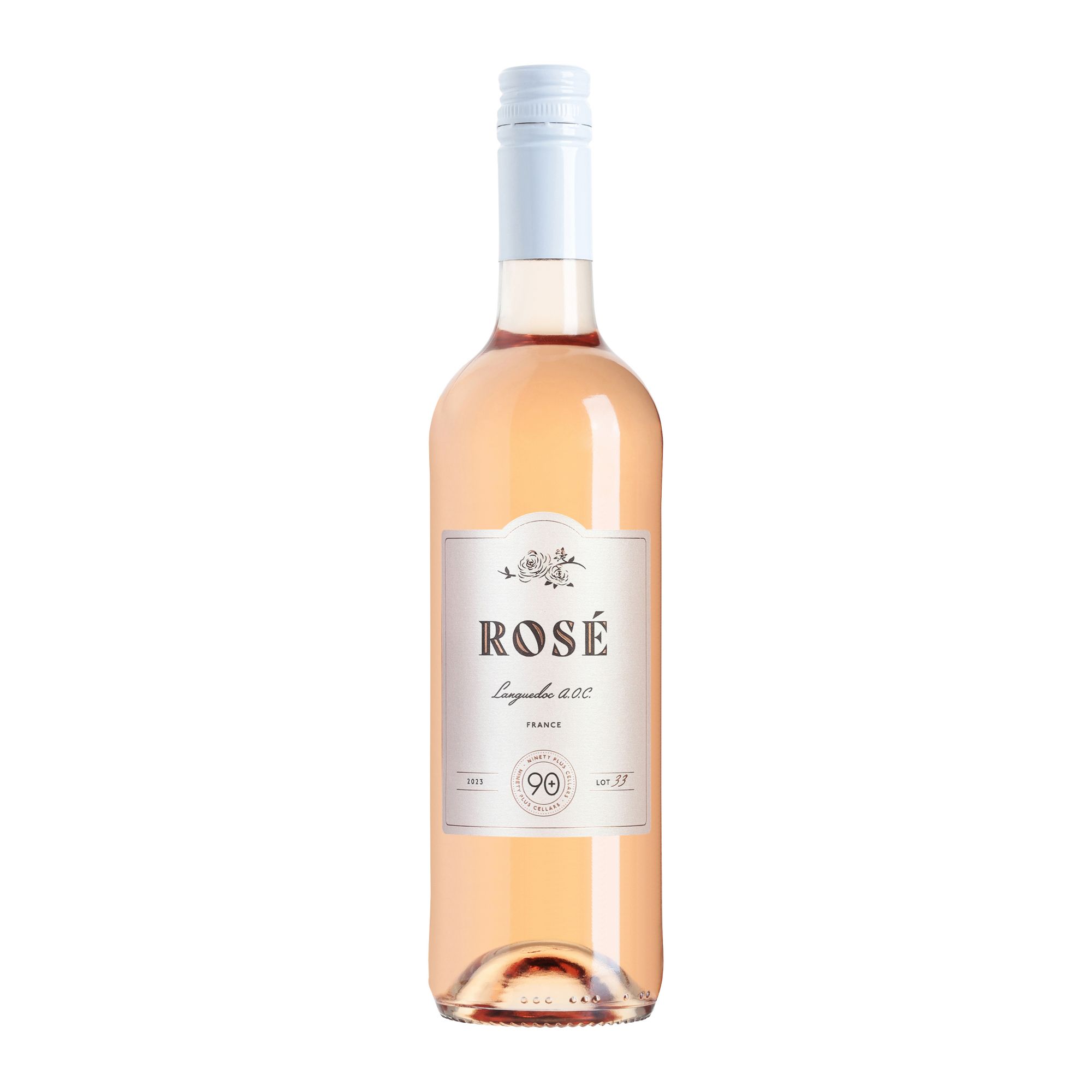 90+ Cellars Lot 33 is a best-selling rose from Languedoc, France. This dry, fruity, and food-friendly wine is the perfect everyday rose. 90+ Cellars searches the globe for great wines from highly rated wineries, and brings them to you under one label that costs less. Every wine has a Lot number and the 90+ stamp of approval. That way, you know you'll get a great wine, every time. Aromas of ripe strawberries and cherries, accompanied by notes of fresh, wild herbs, white pepper and melon. Dry and bright on the palate, the wine has juicy fruit and an easy-going demeanor. The perfect summer sipper!