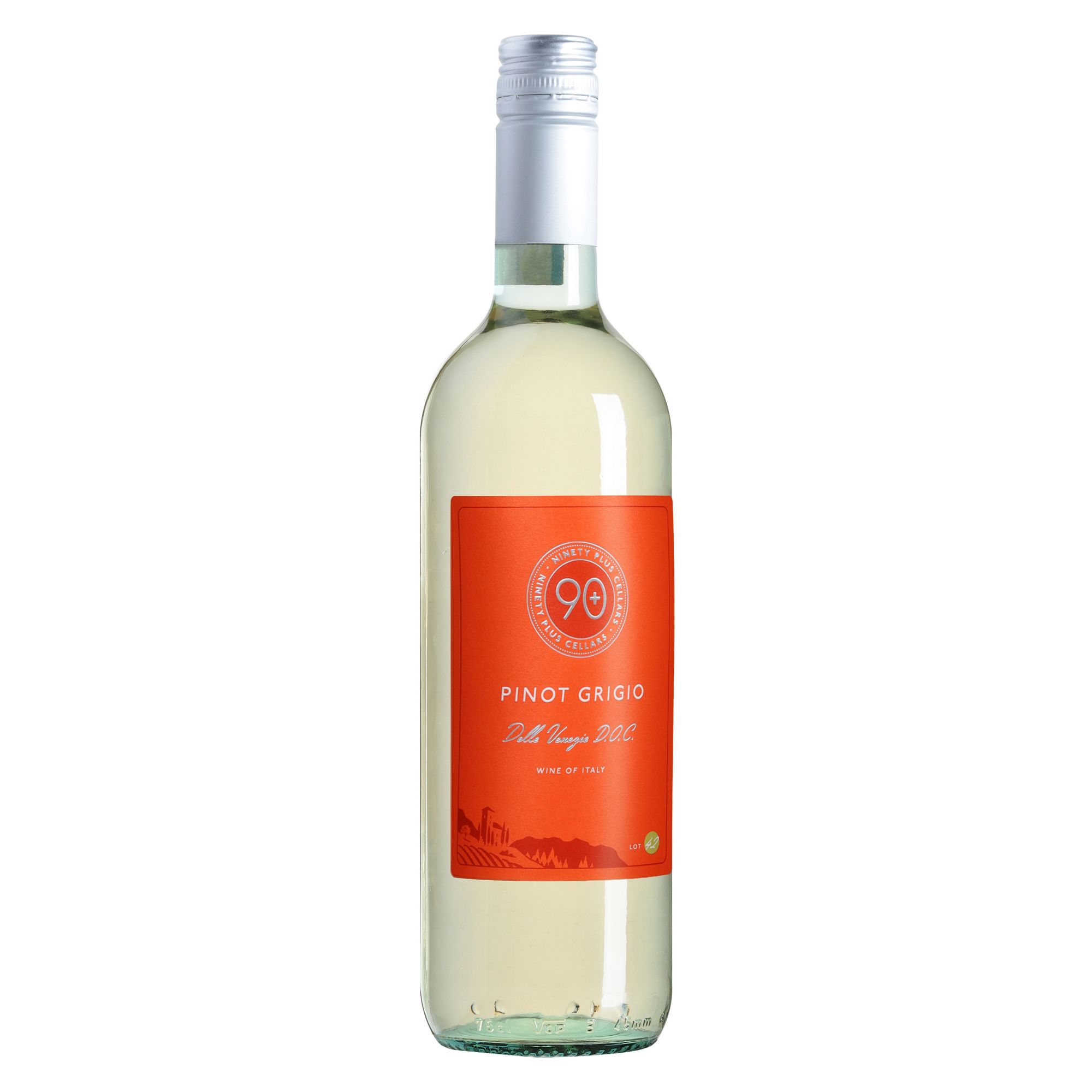 90+ Cellars Lot 42 is a top-selling Pinot Grigio from Trentino, Italy. This wine is bright, zippy and absolutely delicious. 90+ Cellars searches the globe for great wines from highly rated wineries, and brings them to you under one label that costs less. Every wine has a Lot number and the 90+ stamp of approval. That way, you know you'll get a great wine, every time. Ripe apple, pear and apricot aromas combine with notes of wild flowers and honeysuckle. Medium bodied with a generous smack of minerality, this wine is perfect with pasta primavera, grilled seafood, or sliced Prosciutto, Asiago, and fresh crusty bread.