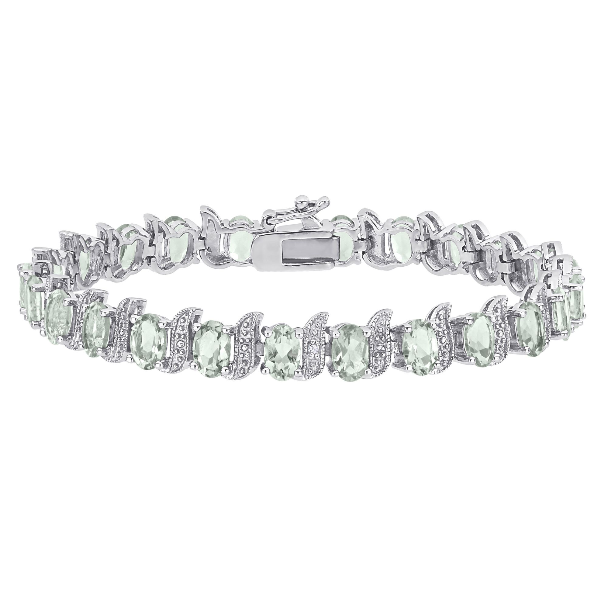 9.8 ct. t.g.w. Green Quartz and Diamond Accent S-Link Tennis Bracelet in Sterling Silver