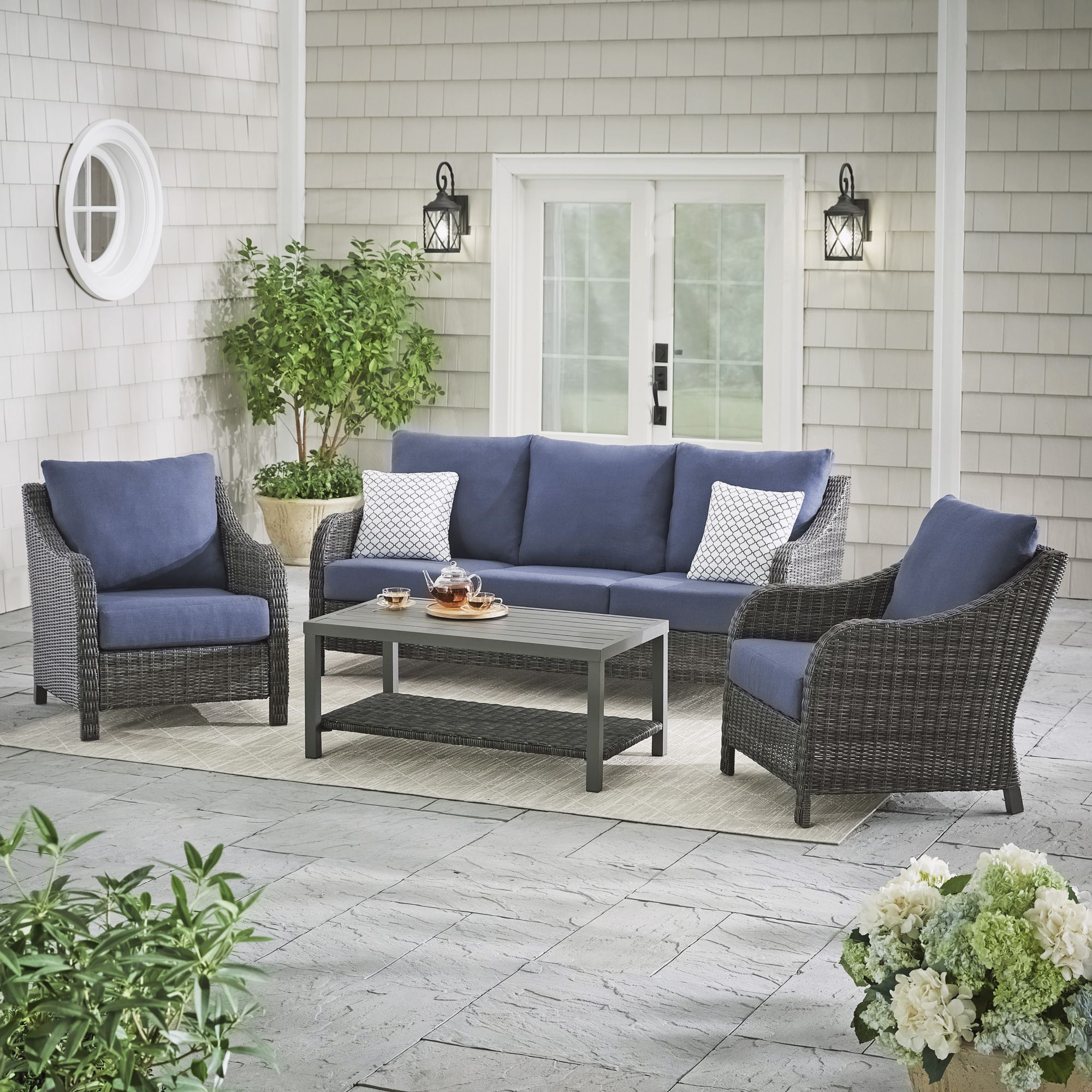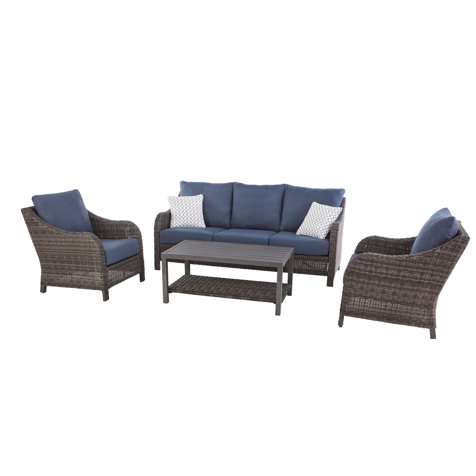 Berkley Jensen Seabrook 4-Piece Aluminum Wicker Set, Charcoal Blue