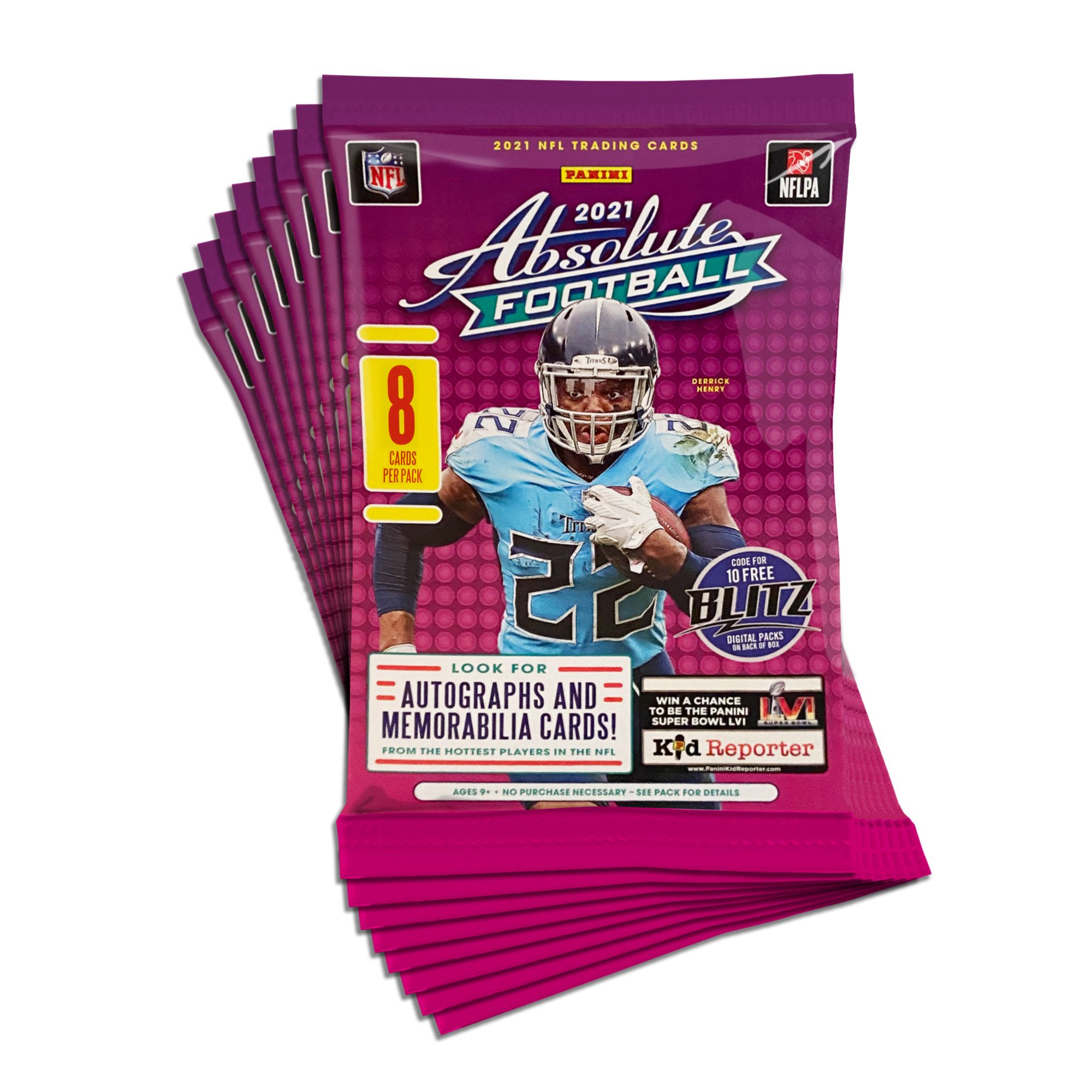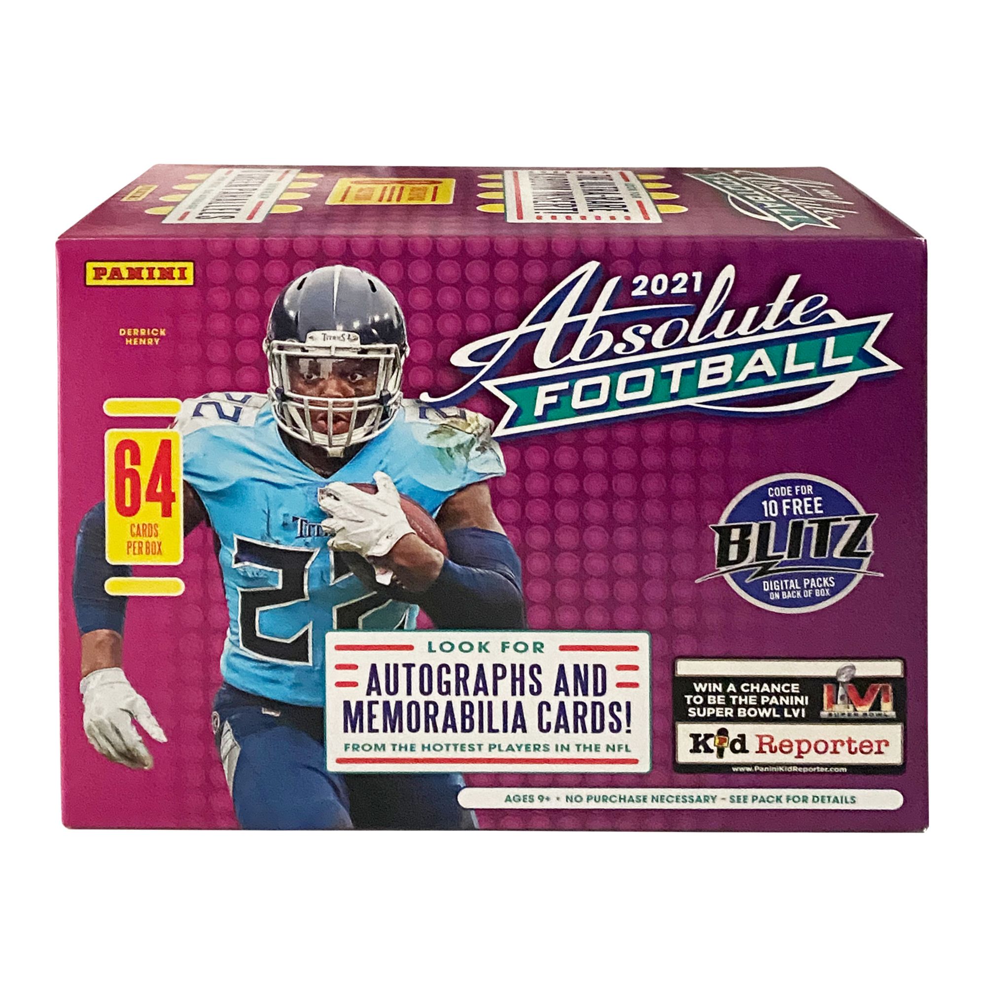 Age ranges 9+ Each 2021 Absolute Football Blaster Box comes stocked with eight cards per pack and eight packs per blaster box for a total of 64 2021 Absolute Football cards per box 2021 Absolute Football features a 200-card set including 100 base and 100 rookies Look for autographs and memorabilia cards from the hottest players in the NFL Look for ultra-rare kaboom insert Unwrap three green parallels per box, on average Includes 64 licensed NFL trading cards per box (autographs and memorabilia cards and ultra-rare Kaboom insert)
