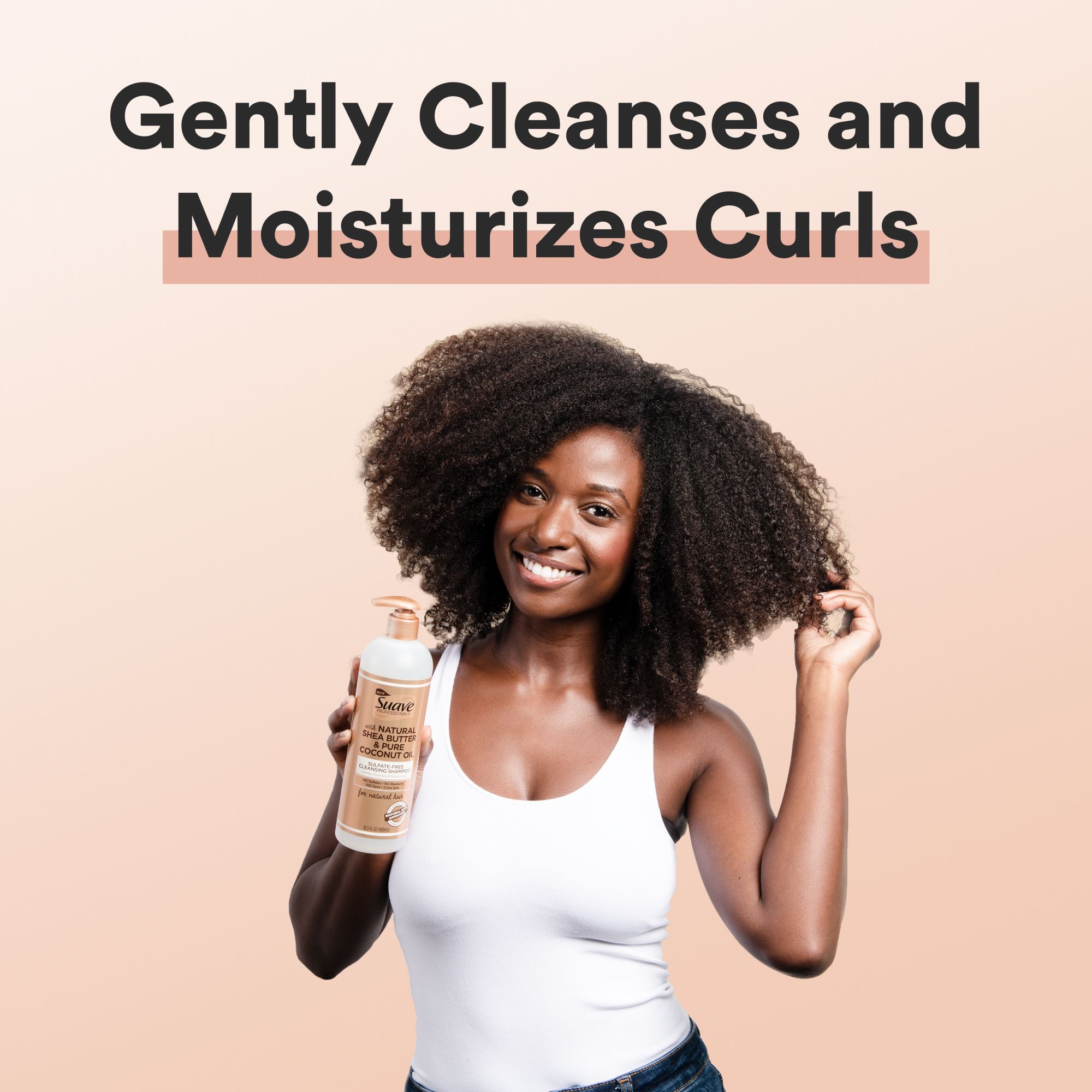 To create the right products for natural hair, Suave asked the experts. Introducing the Suave Professionals Collection for Natural Hair a curly hair products range inspired by and made for women with natural hair. Collaborating with over 5,000 women with natural hair to craft, test, and adapt formulas, Suave developed a collection of moisture rich products, like this moisturizing shampoo and conditioner, specifically designed for women with curls, coils, and waves - free of any sulfates, parabens, or dyes. This sulfate free shampoo formula, like all products for curly hair in our Suave for Natural Hair range, is also color safe. Each moisture-rich formula is infused with natural shea butter, known to deeply moisturize, and pure coconut oil for hair to help fight frizz, reduce breakage, and enhance shine. The Suave Professionals Curly Hair Conditioner for natural hair is a buttery hair conditioner that deeply moisturizes and provides maximum slip. Fingers easily glide through strands to protect against breakage while detangling. The curl conditioner makes hair easy to detangle while taming frizz and enhancing shine. About Suave: For over 75 years Suave has offered professional quality products for the entire family. The Suave promise is to make gold standard quality attainable to all, so everyone can look good, smell good, and feel good every day.