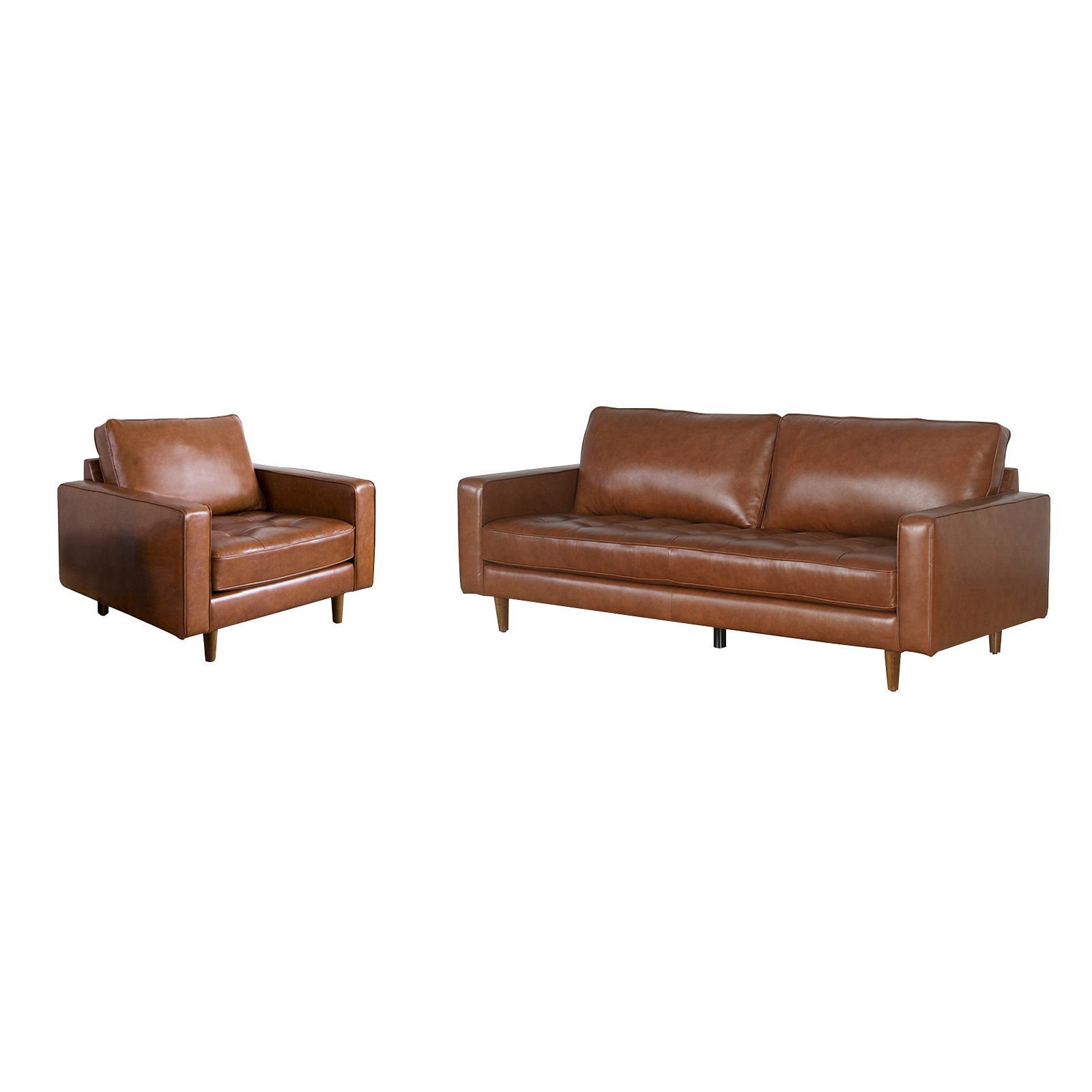 Abbyson Haverly Mid Century Leather Sofa and Armchair - Brown