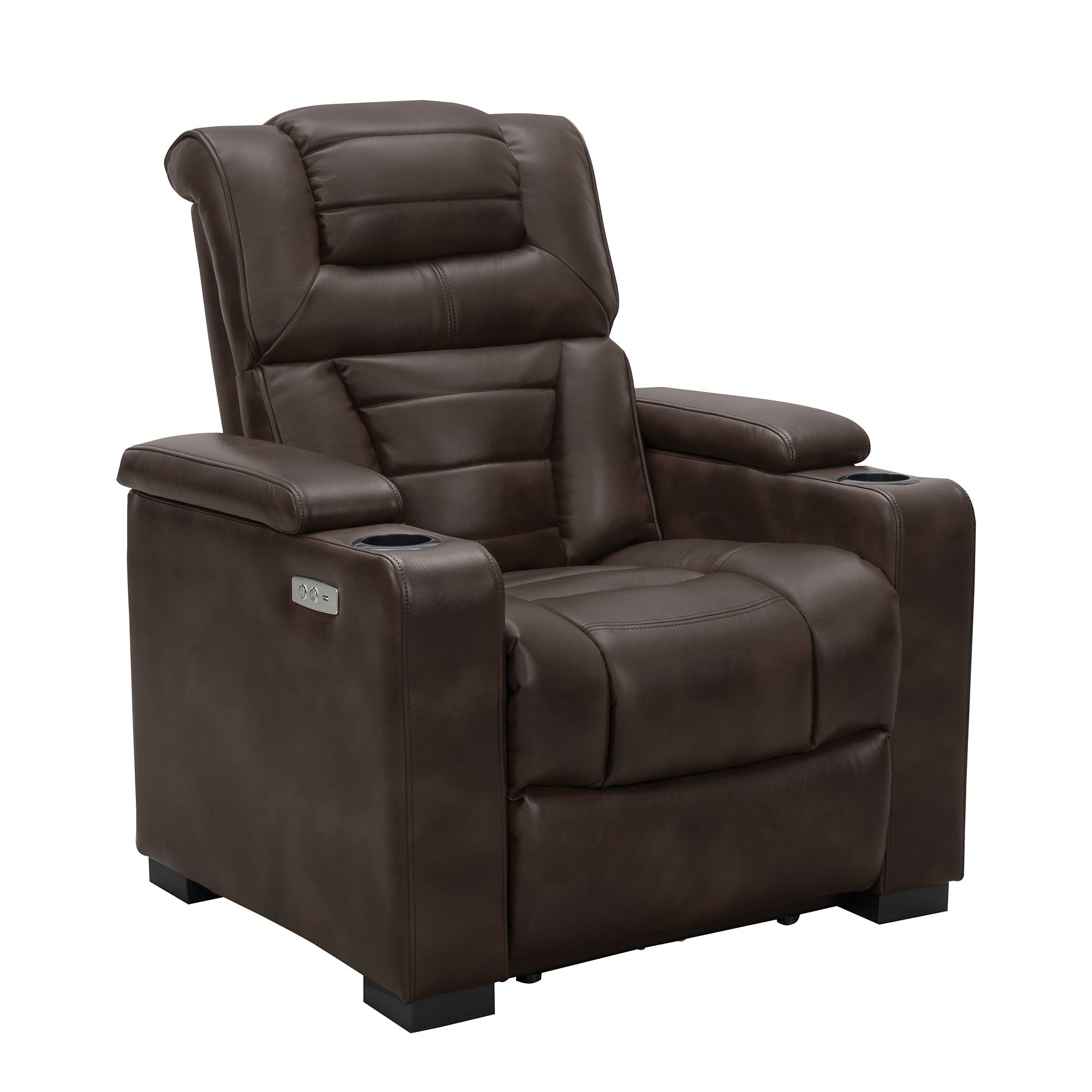 Enjoy your favorite TV shows from the Galaxy Theatre Power Recliner. For added comfort and style, it features a steel reclining mechanism, pocket coil core, silver cup holders and USB port for ultimate relaxation.