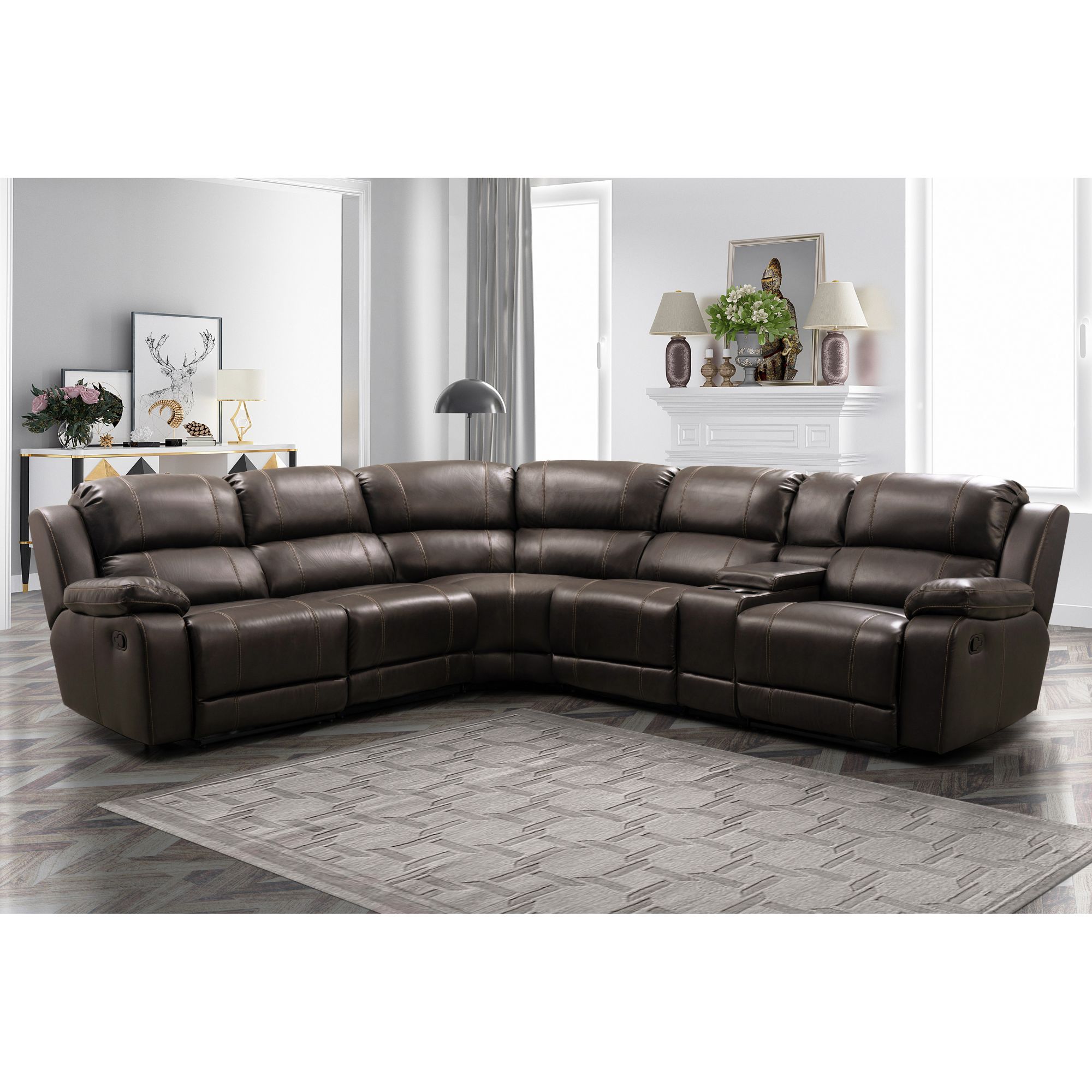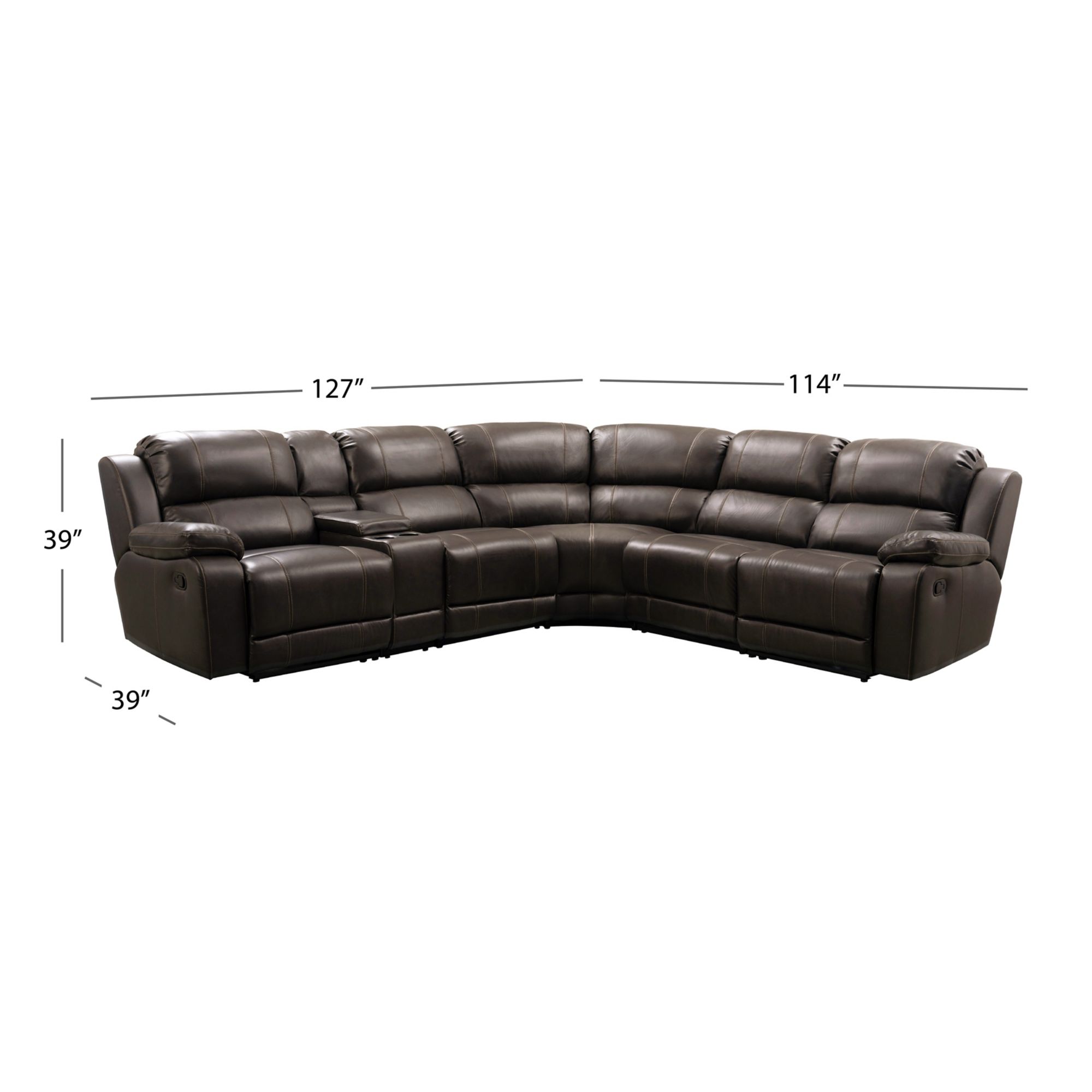 Recline in your living room with the elegant Martin 6 Piece Manual Sectional. Made with durable and sturdy kiln-dried hardwood frame and covered in a beautiful espresso leather gel, this set is built for an enduring style and comfort that you will enjoy for years to come.