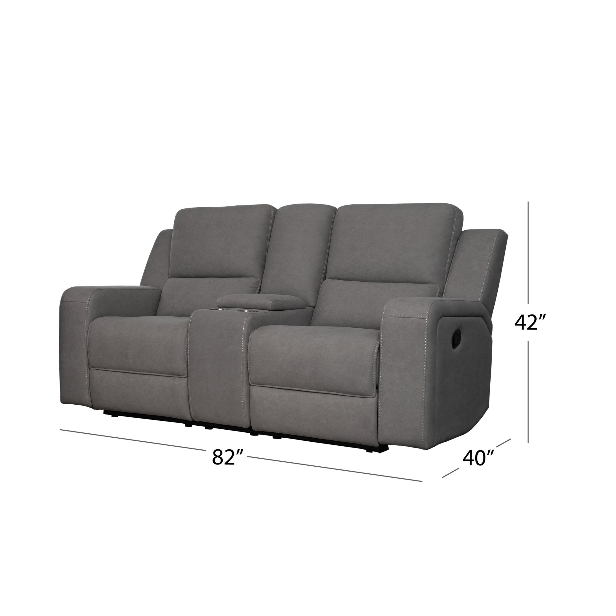 Abbyson Maggie 3-Pc. Fabric Manual Reclining Sofa Set with Cupholders and Storage - Charcoal
